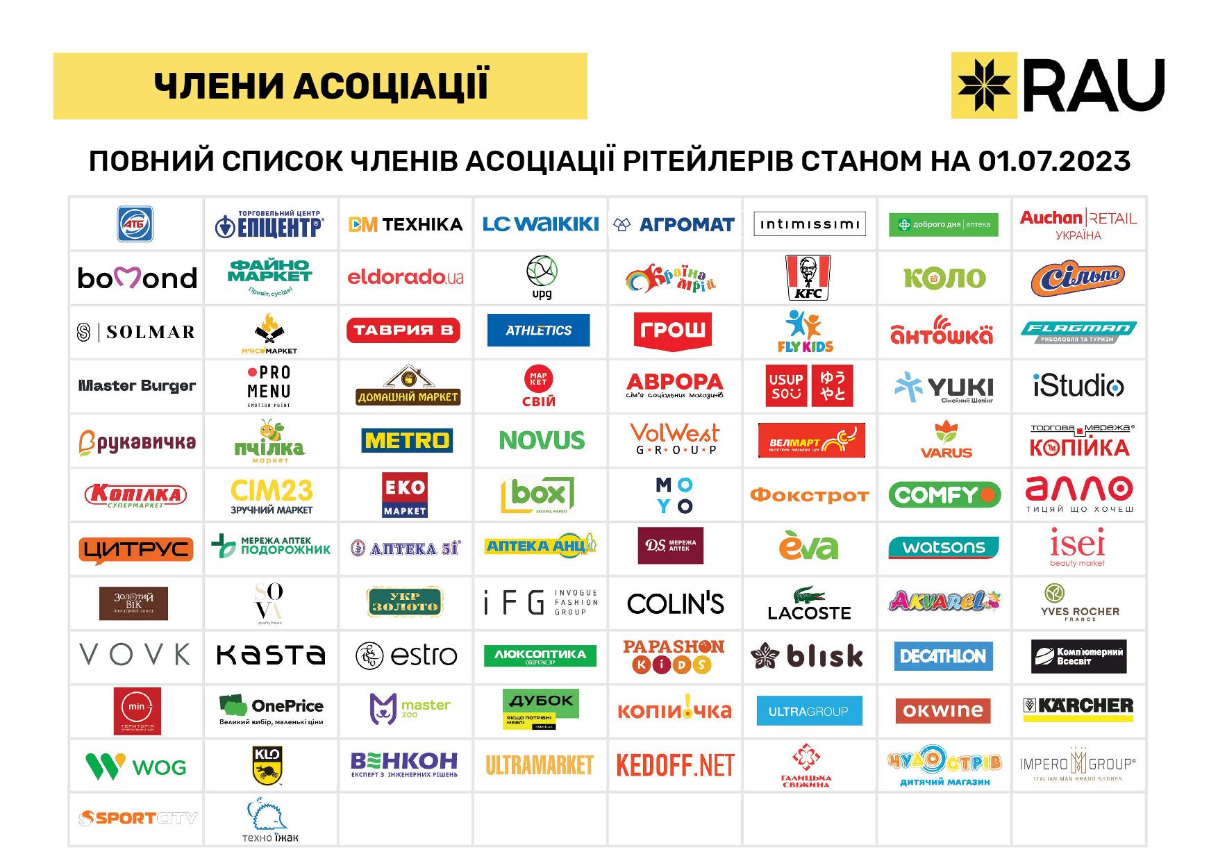 За даними дослідження, проведеного аналітичним відділом RAU серед компаній-членів Асоціації, станом на 1 липня 2023 року мережі змогли відновити майже 100% довоєнної кількості магазинів, а в деяких галузях – навіть перевищити показники лютого 2022.