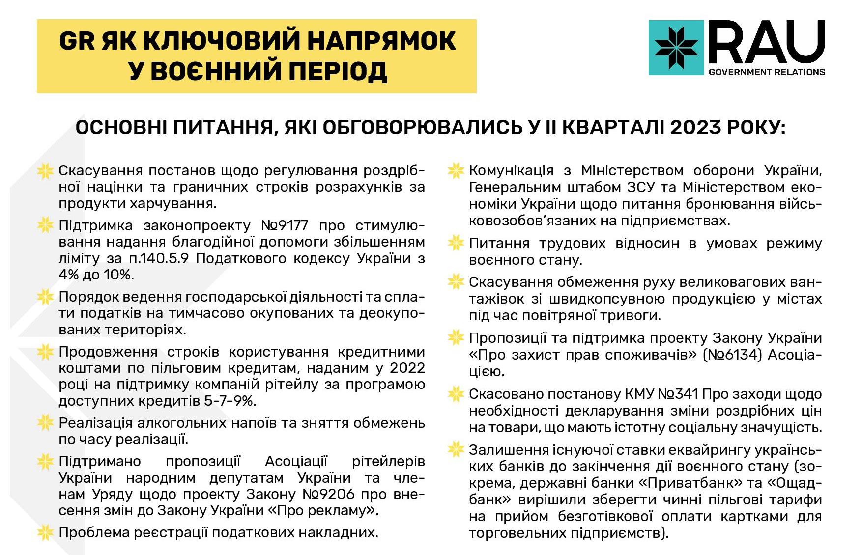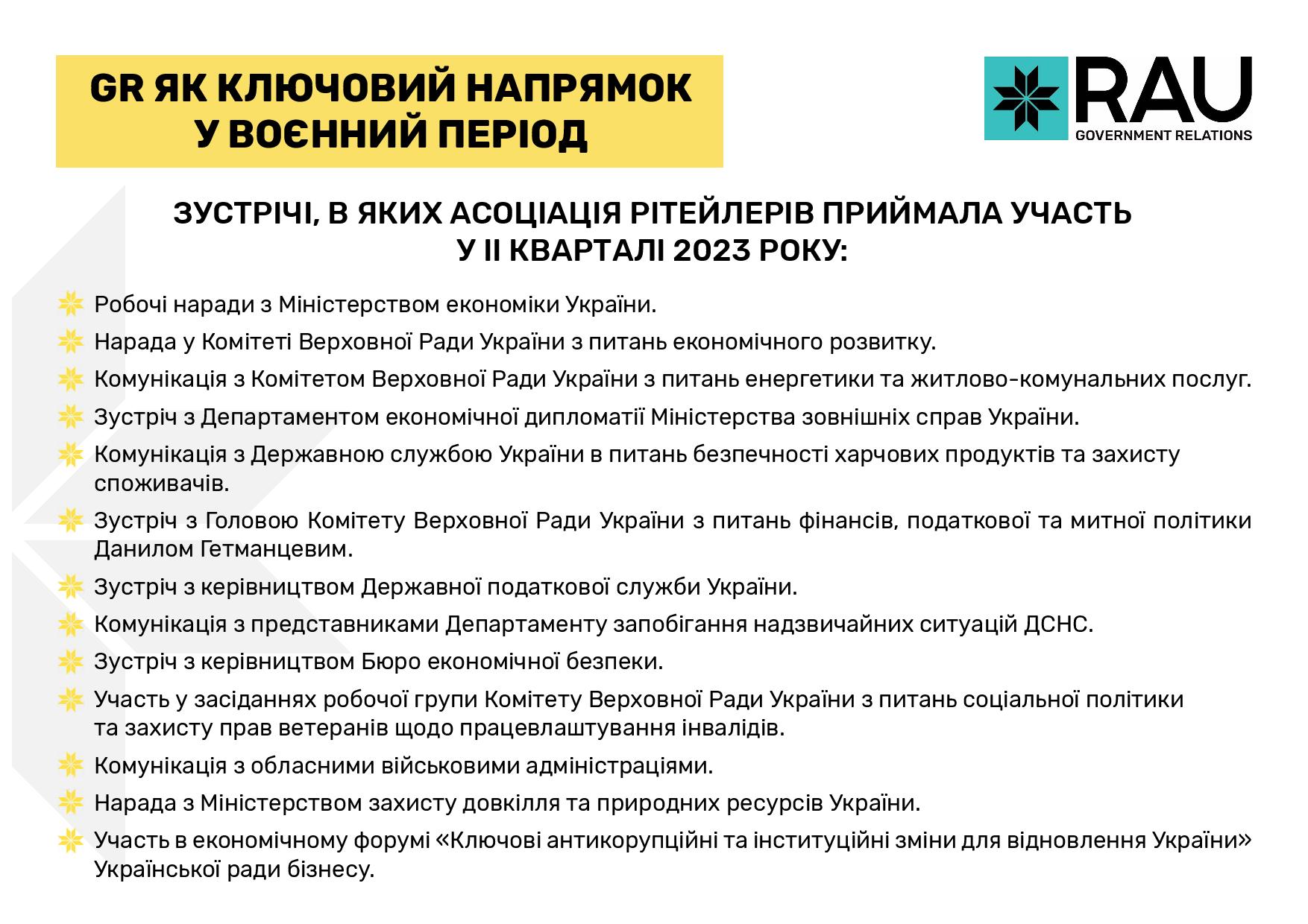 Звіт про діяльність Асоціації рітейлерів України за II квартал 2023 року