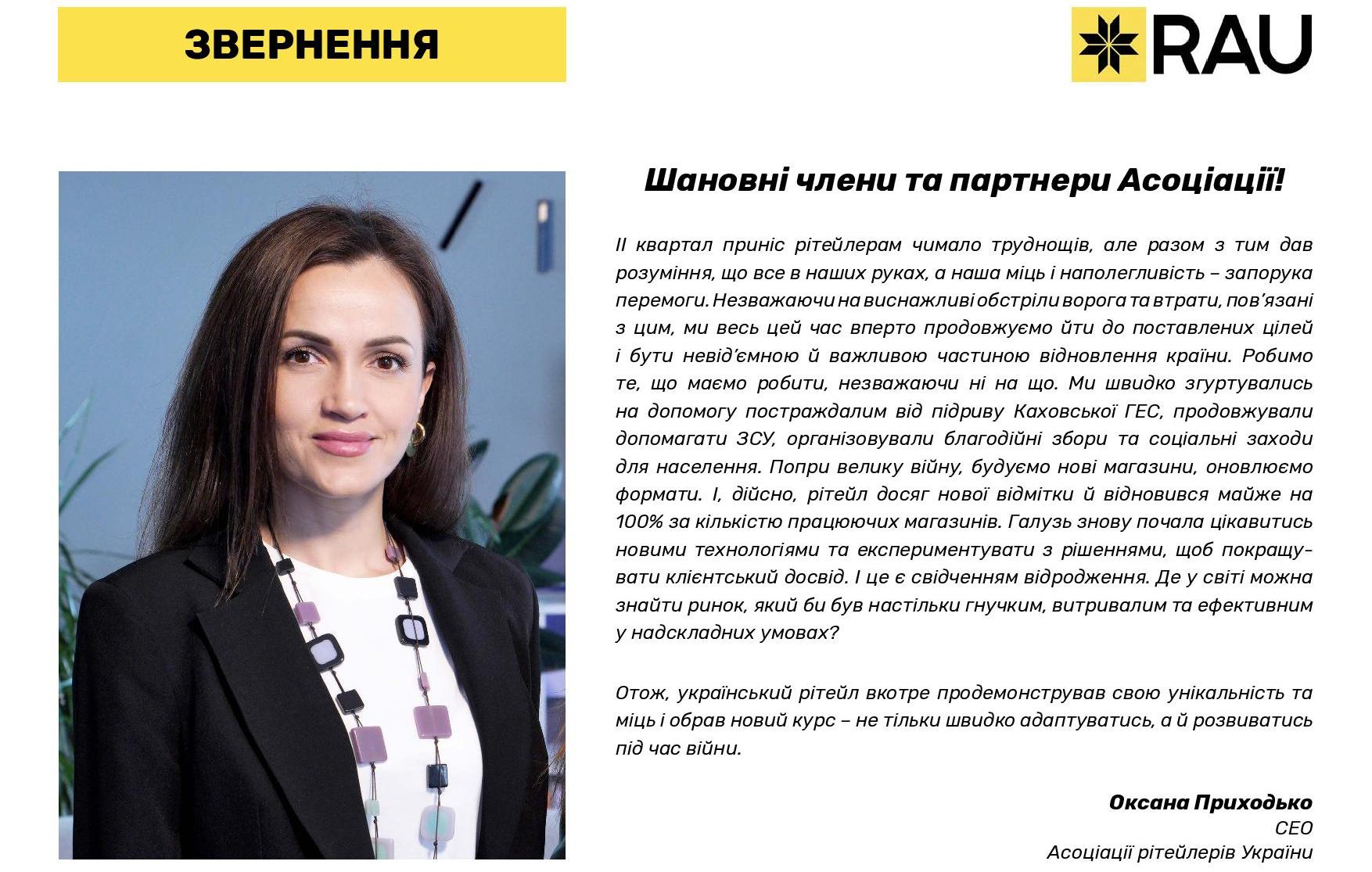 ІІ квартал приніс рітейлерам чимало труднощів, але разом з тим дав розуміння, що все в наших руках, а наша міць і наполегливість – запорука перемоги. Незважаючи на виснажливі обстріли ворога та втрати, пов’язані з цим, ми весь цей час вперто продовжуємо йти до поставлених цілей і бути невід’ємною й важливою частиною відновлення країни.