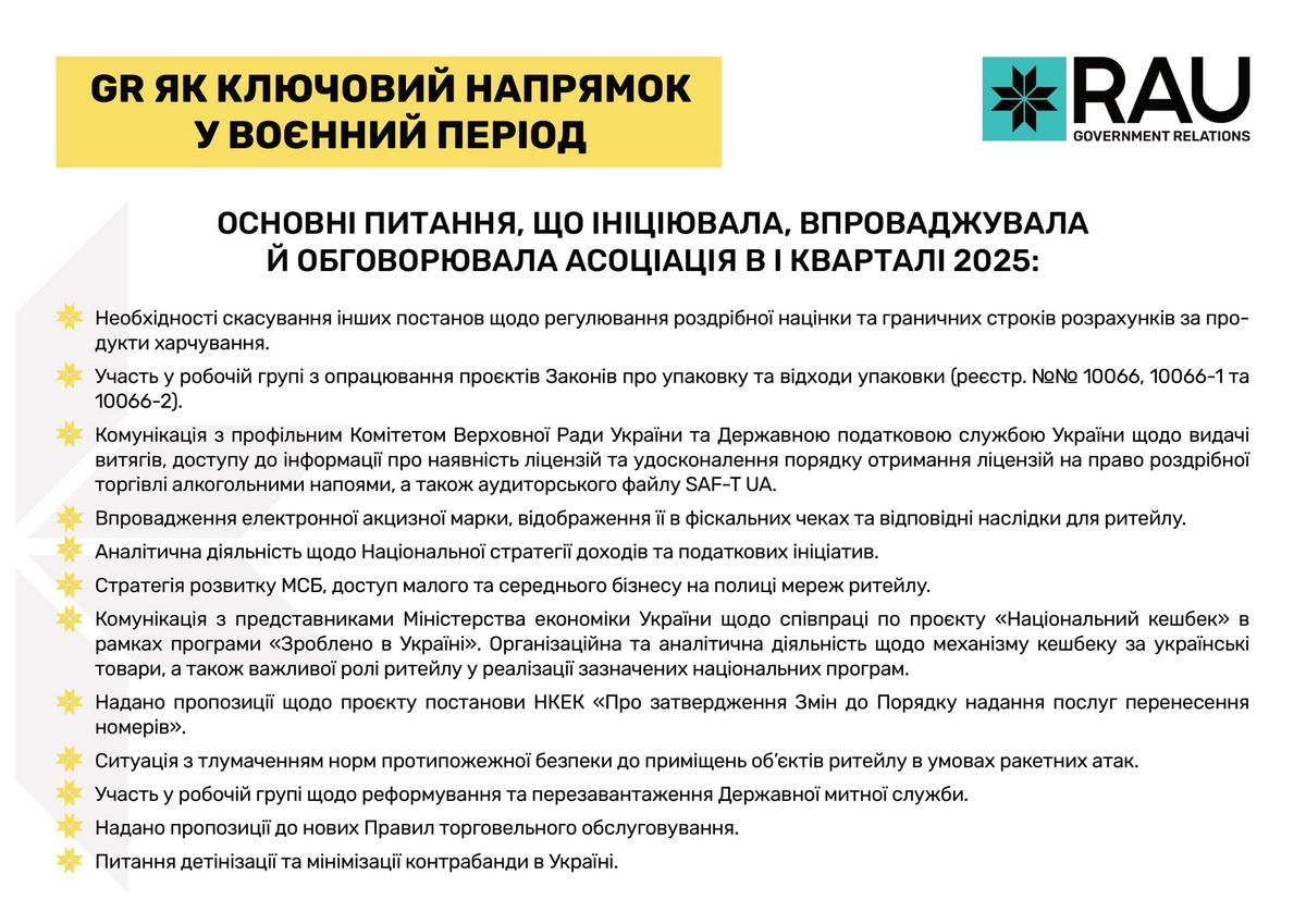 Звіт про діяльність Асоціації ритейлерів України за I квартал 2025 року