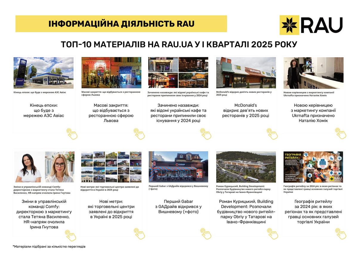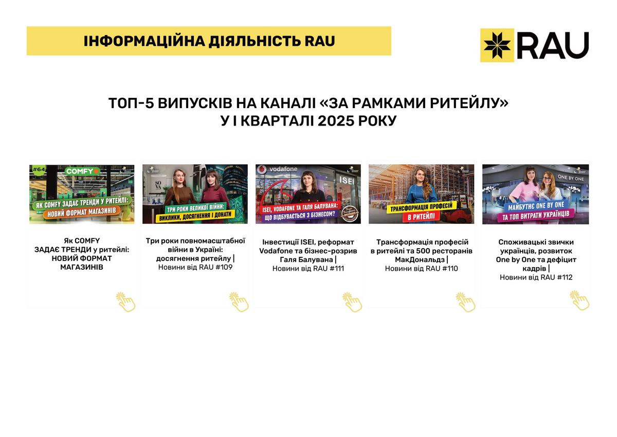 Підсумки роботи Асоціації ритейлерів України у I кварталі 2025 року в цифрах та графіках: які члени та партнери приєднались до RAU, скільки статей було опубліковано, які аналітичні дослідження вдалося реалізувати, які зустрічі з владою організувала GR-команда, що було зроблено та які результати отримано.