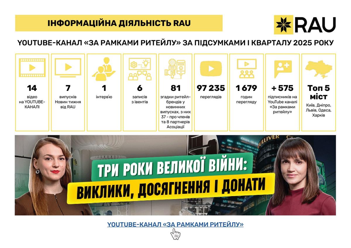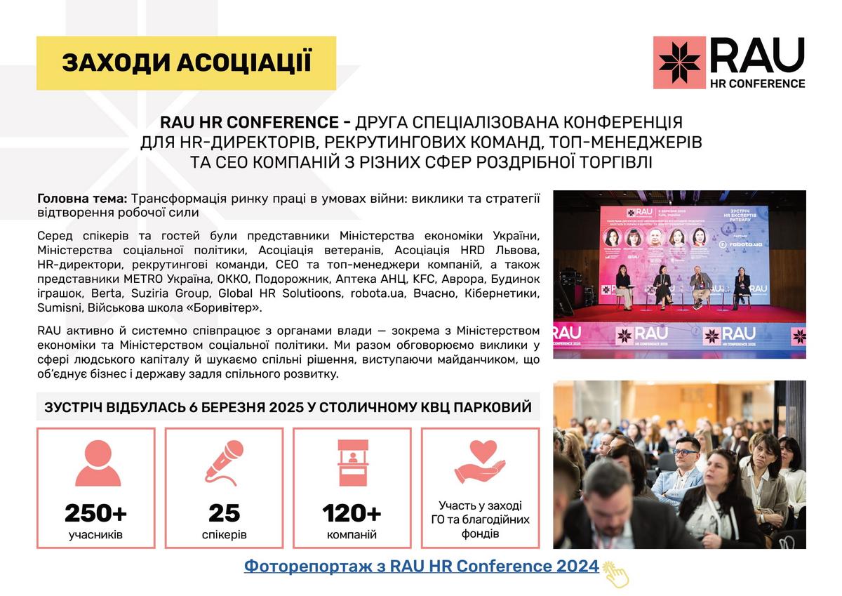 Водночас наша спільна участь у гуманітарній підтримці за три роки повномасштабної війни не менш вагома: 18,1 млрд грн — сума допомоги від ритейлу армії, громадам і тим, хто цього потребує. Це не просто цифри. Це – про відповідальність бізнесу в час, коли кожен внесок важливий. Ми вже активно готуємось до RAU Eхро 2025, яке цього червня збере разом найсильніших гравців ринку, інвесторів, партнерів та новаторів. Там ми говоритимемо про майбутнє — і писатимемо його разом.