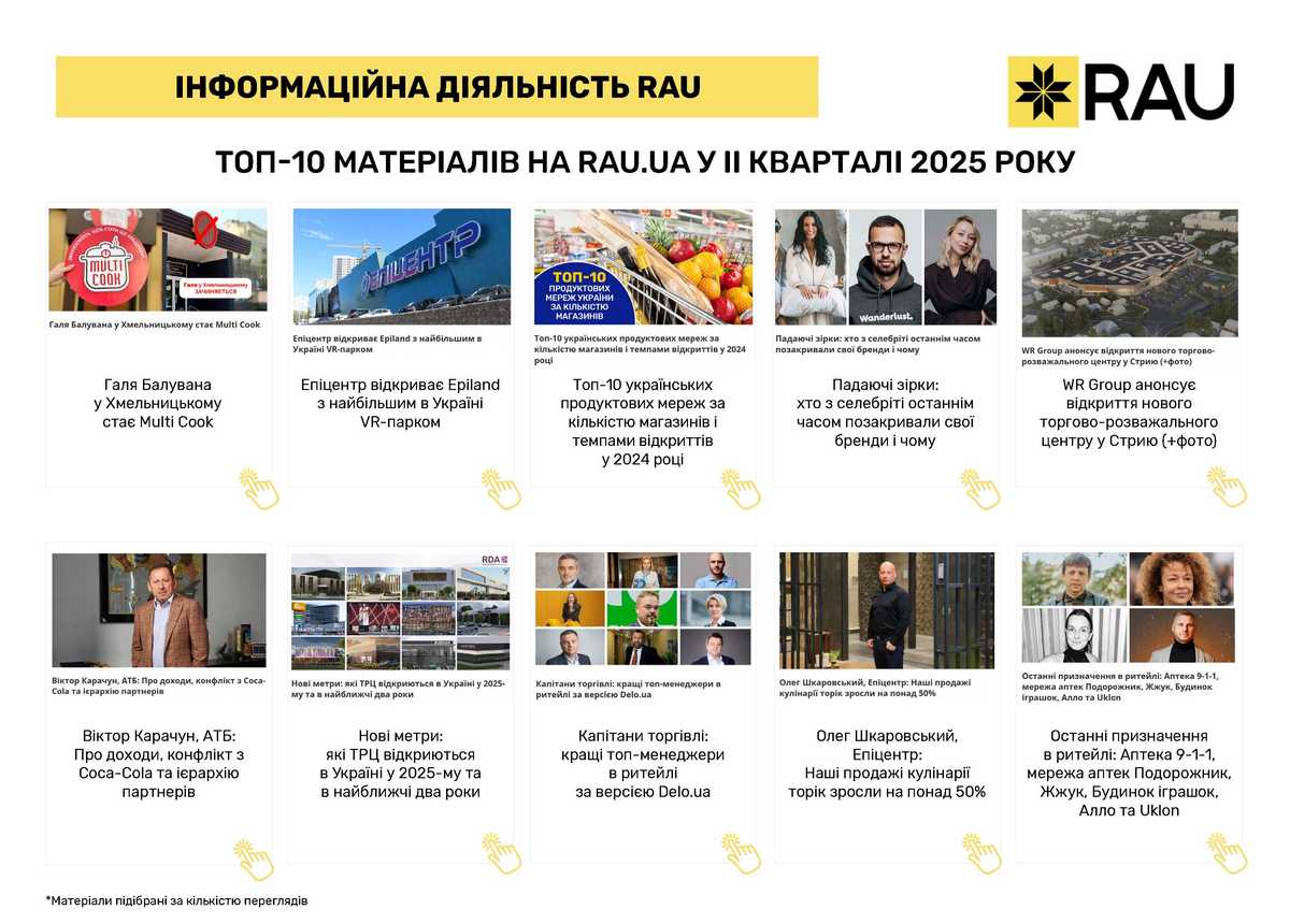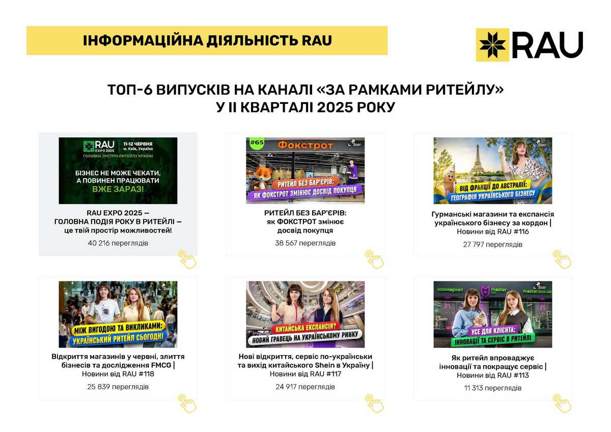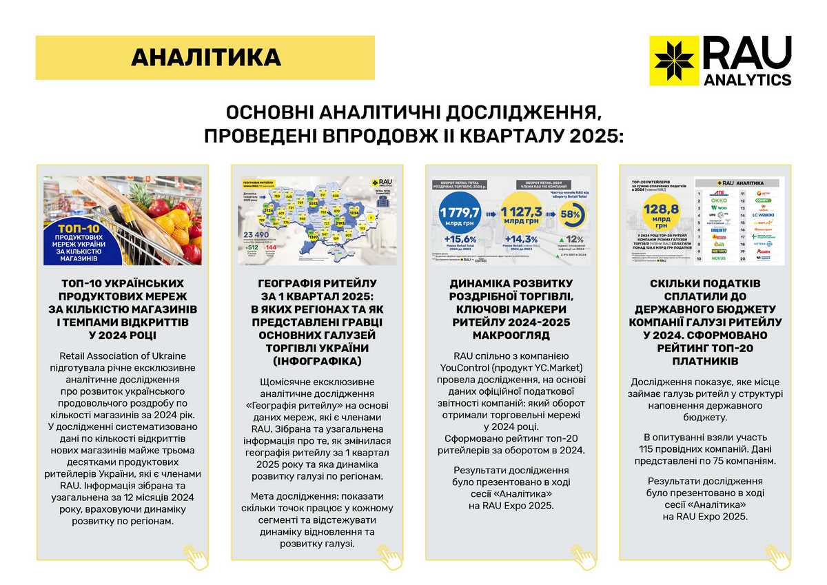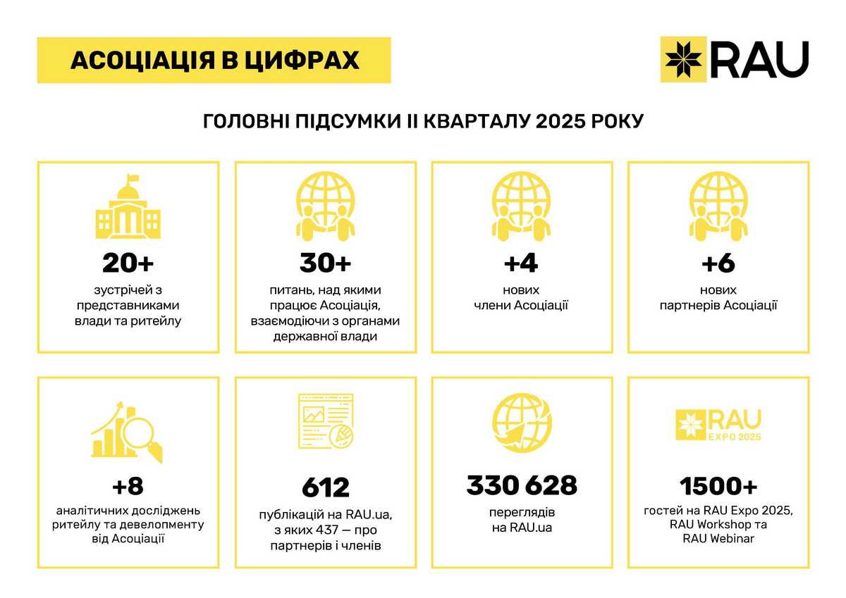 Підсумки роботи Асоціації ритейлерів України у ІI кварталі 2025 року в цифрах та графіках: які члени та партнери приєднались до RAU, які заходи проведено, скільки статей було опубліковано, які аналітичні дослідження вдалося реалізувати, які зустрічі з владою організувала GR-команда, що було зроблено та які результати отримано.