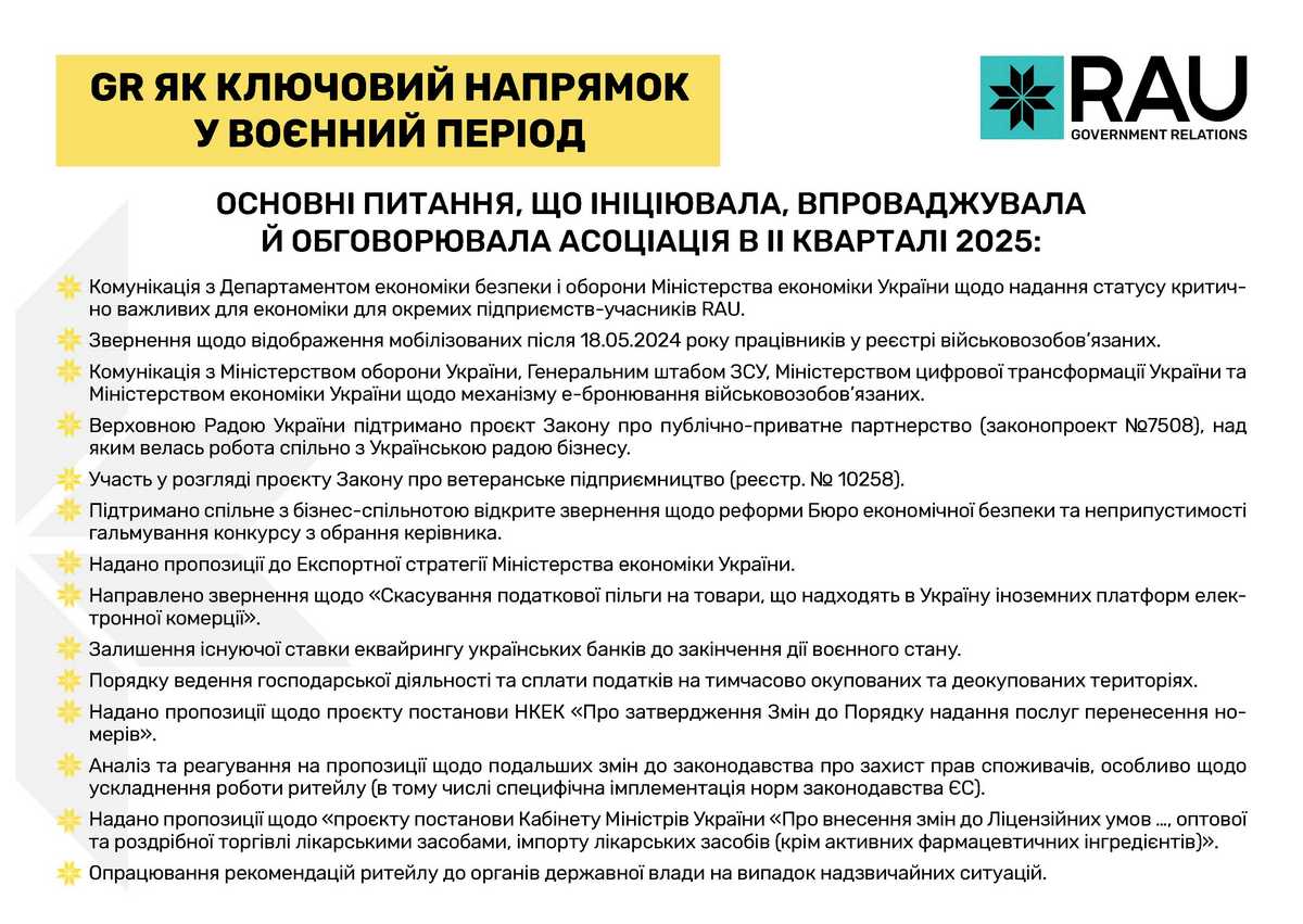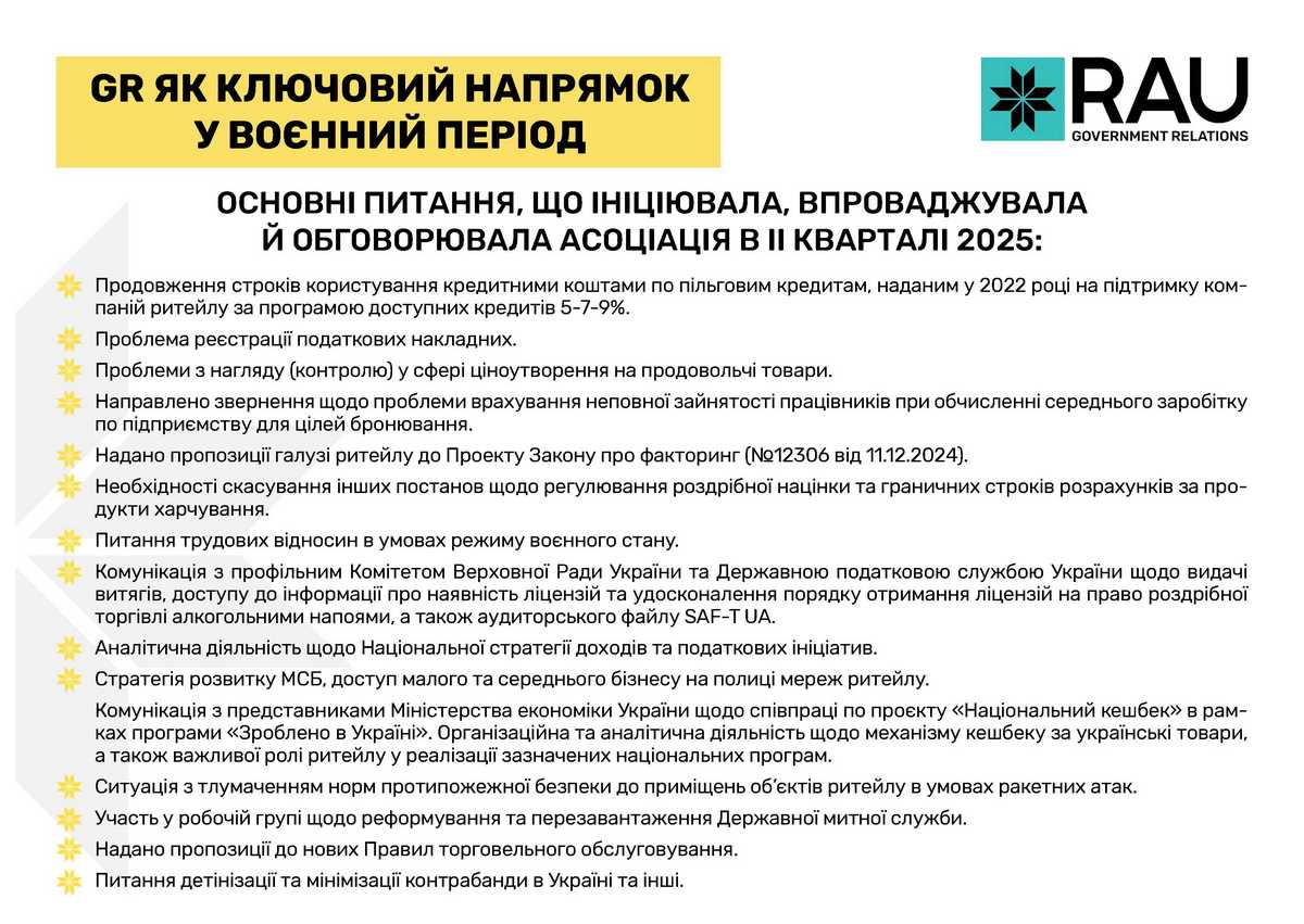 Звіт про роботу Асоціації ритейлеров України за ІІ квартал 2025 року