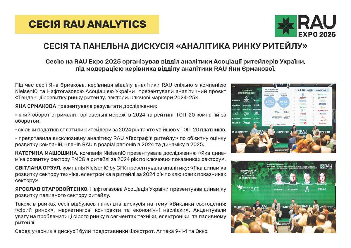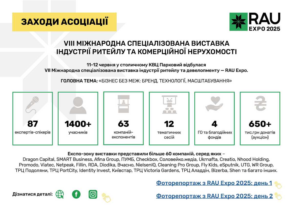 Попри всі виклики, український ритейл впевнено тримає удар і продовжує зростати. Ми з великим натхненням і вірою в майбутнє організували RAU Expo 2025 — наймасштабнішу подію в історії української ритейл-спільноти. Підготовка до RAU Expo 2025 була, без перебільшення, найскладнішою за весь час — не лише емоційно, а й фізично. У реальності, де ризики стали нашою буденністю, мипровели не просто виставку, а подію, яку вже назв али найкращою в історії проєкту. І навіть у таких умовах ми не забули головне — безпека. Укриття були передбачені й ретельно облаштовані, бо турбота про людей для нас — понад усе. Ми об’єднали потужний склад спікерів, актуальні кейси, глибоку аналітику, щирі дискусії та надійних партнерів. Все — на найвищому рівні. RAU Expo 2025 ще раз довела: стійкість українського бізнесу — реальна, жива і надихаюча.