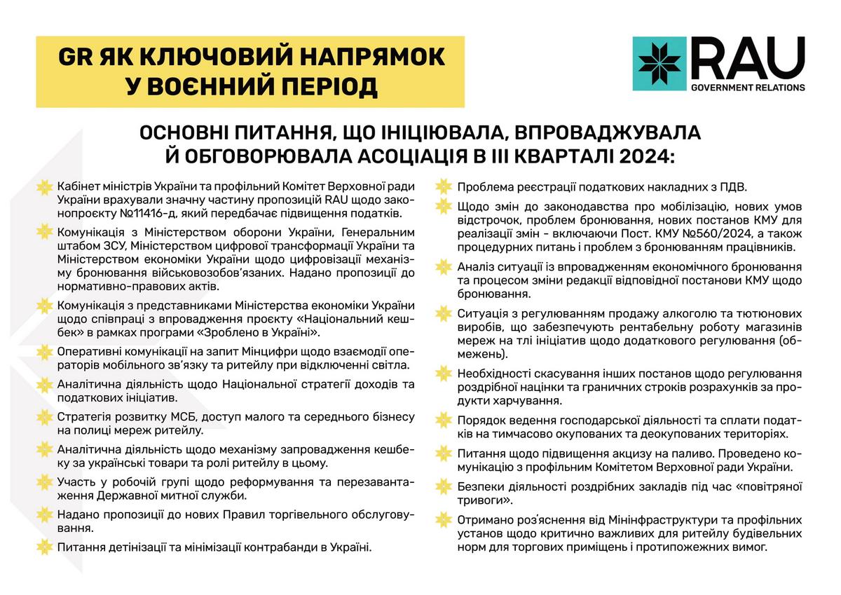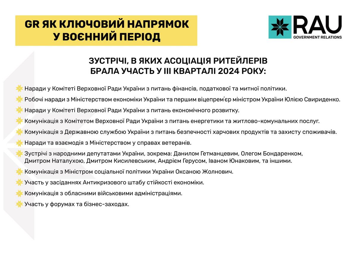 Звіт про діяльність Асоціації ритейлерів України за IІI квартал 2024 року