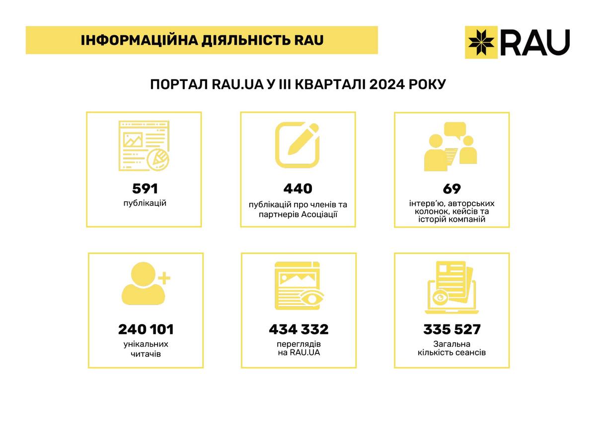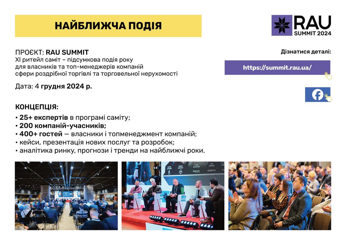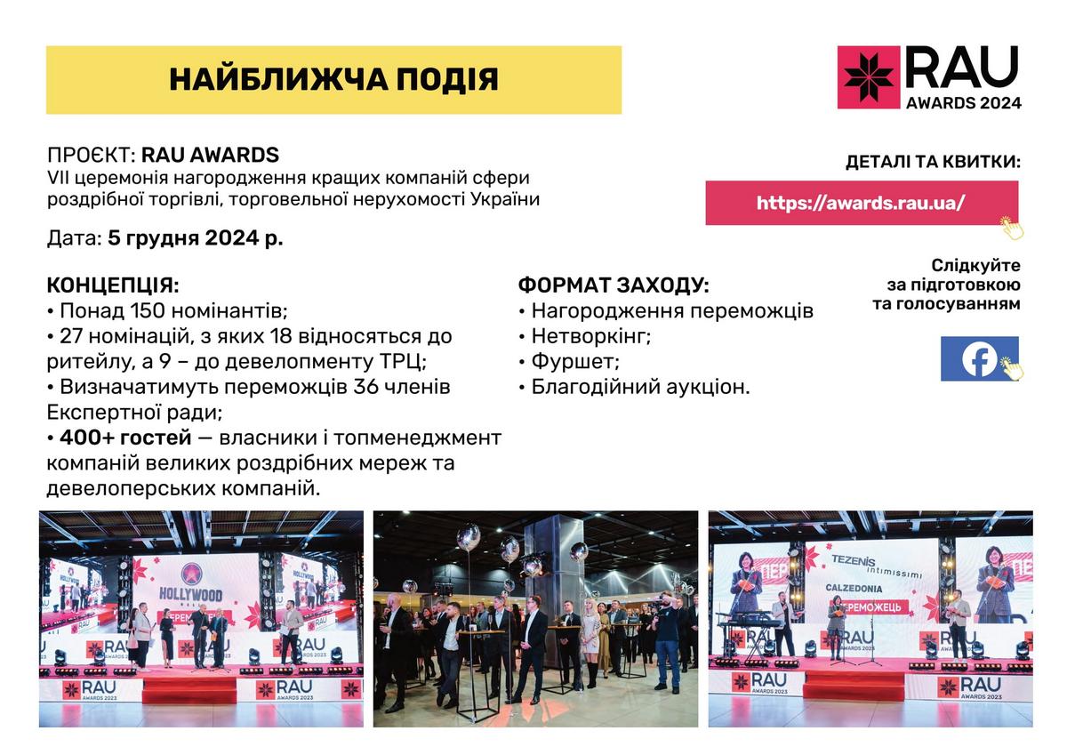 Також хочемо нагадати, що у грудні нас чекають дві ключові події року – RAU Summit 2024 та RAU Awards 2024, де ми разом обговоримо майбутні виклики галузі та відзначимо найкращі компанії, які задають стандарти для всієї індустрії.
