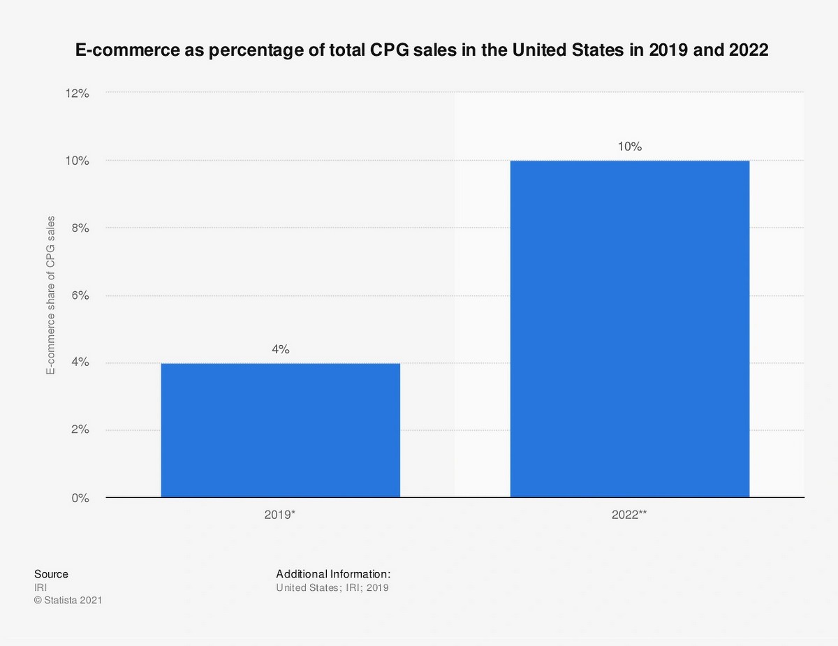 Благодаря пандемии в период 2020-21 годов произошел резкий рост покупок продуктов питания через интернет. В частности, в 2020 году они достигли $95,82 млрд. или 11% от общего объема продаж продуктов питания в США. Для сравнения: за предыдущее десятилетие, с 2010 по 2019 год, рост покупок продуктов в среднем составил всего 1,3% в год с поправкой на инфляцию. А 81% потребителей даже не думали о покупке продуктов через интернет. Эта тенденция прослеживается во многих странах.