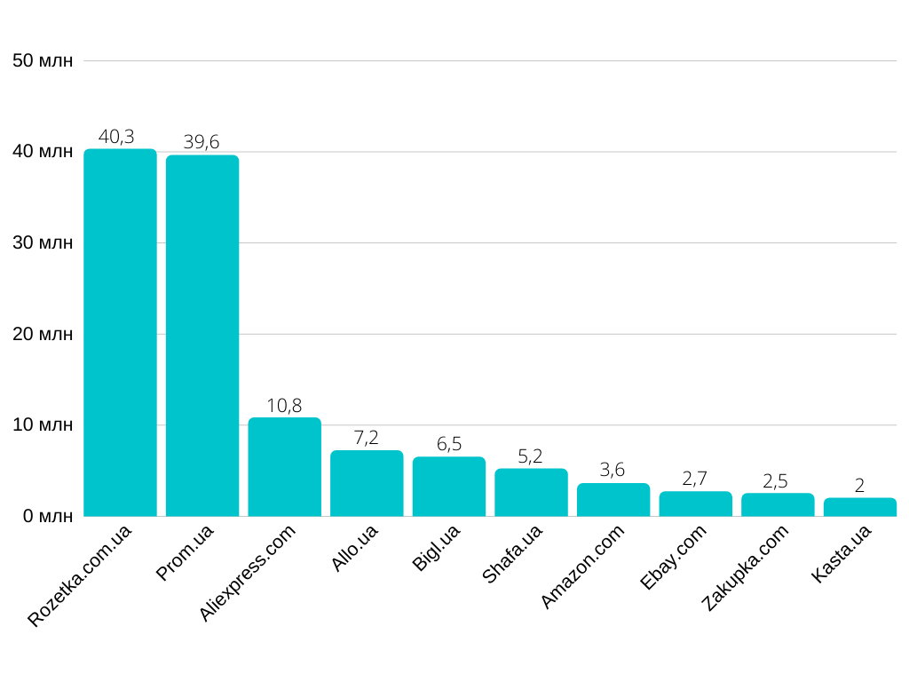 Редакция EVO.Business подготовила список самых посещаемых маркетплейсов в Украине в январе 2020 года. Источник данных — сервис SimilarWeb.