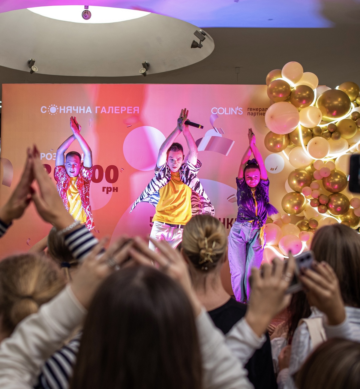 Кроме этого, к своему дню рождения ТРК Солнечная Галерея провел благотворительный аукцион на нужды ВСУ, а также подготовил игры, танцы, квесты для малышей, которые они проходили вместе с «Щенячьим Патрулем», выступление от невероятного кавер-бэнда. Завершил эмоциональный вечер долгожданный розыгрыш подарков от партнеров. Главными призами были сертификаты, общей суммой 20 000 грн., на шопинг от магазина Colin’s.