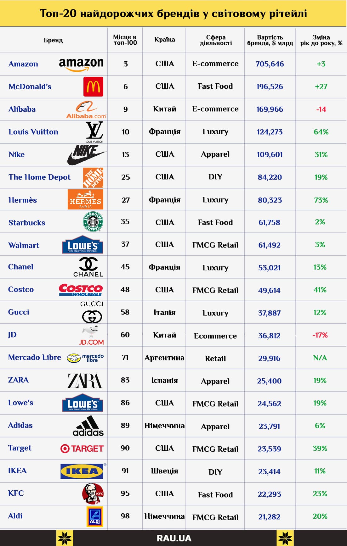 Топ-20 самых дорогих брендов в мировом ритейле в 2022 году (инфографика)