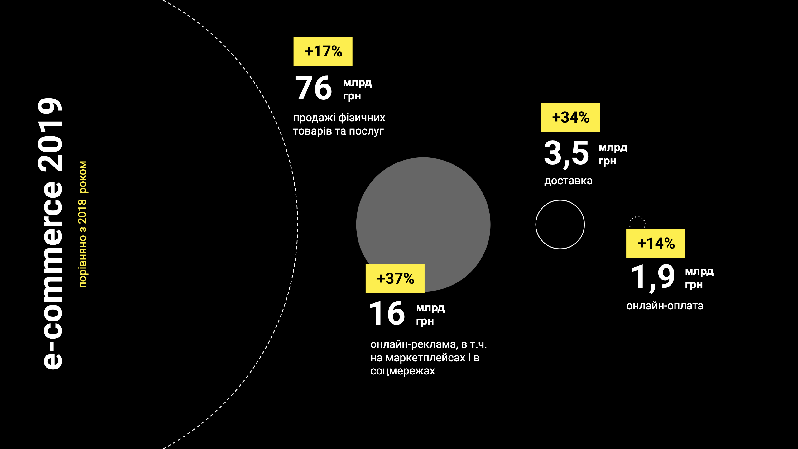 Рост электронной коммерции привел к увеличению доходов от сопутствующих сервисов: доставки, рекламы, продвижения, оплаты через интернет. На доставке товаров, приобретенных онлайн, операторы заработали минимум 3,5 млрд грн. На онлайн-оплатах – около 1,9 млрд грн. По оценкам Всеукраинской рекламной коалиции, выручка от рекламы товаров и услуг в соцсетях, на маркетплейсах и интернет-ресурсах игроков рынка достигает 16 млрд грн – на 37% больше, чем в 2018 году.