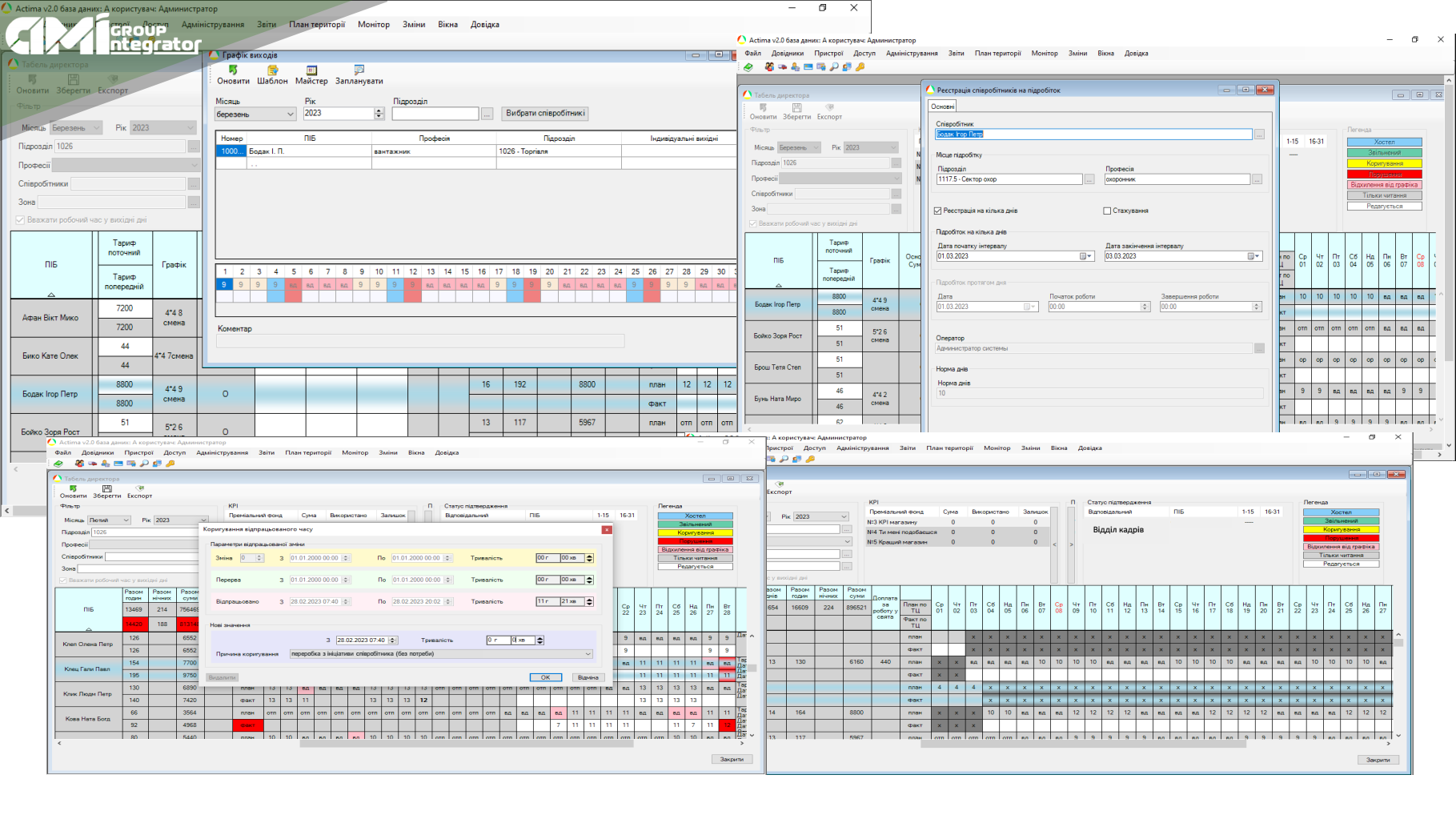- гибкое планирование и контроль графиков выходов сотрудников с возможностью оперативной перепланировки графиков;