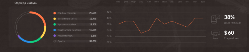 Согласно данным Admitad, в 2019 году в Украине 42% онлайн-продаж по модели CPA было привлечено через кешбэк-сервисы. В лидирующих сегментах – «гипермаркеты» и «одежда» – украинцы также чаще совершали покупки благодаря кешбэку.