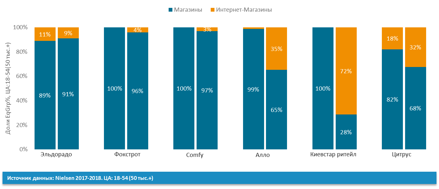 Среди интересных трендов, наметившихся ранее и продлившихся в 2018 году, стоит отметить дальнейшее увеличение доли затрат на продвижение онлайн-версий магазинов.