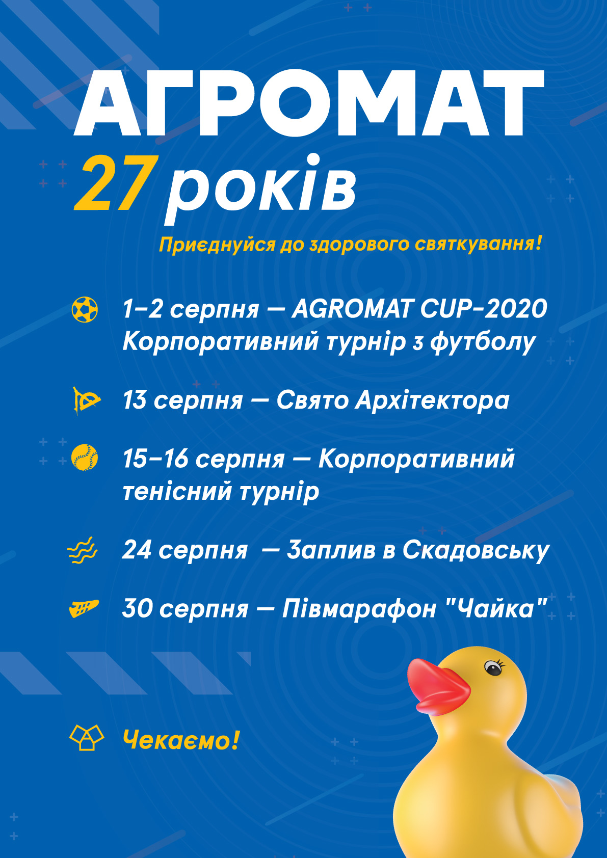 Все мероприятия сопровождаются развлекательной программой, конкурсами и подарками. АГРОМАТ приглашает клиентов и друзей компании присоединяться к здоровому празднованию!