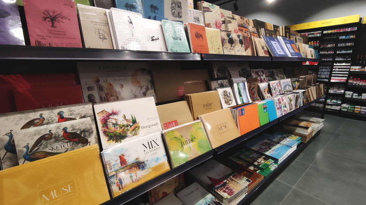 В новом магазине покупателей ждет большой отдел разнообразной литературы, широкий ассортимент художественных материалов и все для хобби.