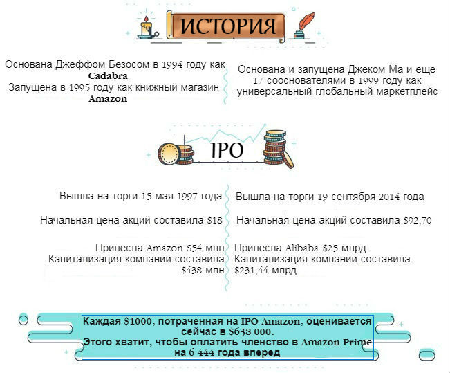 Все вехи развития, этапы роста и финансовые результаты двух мировых гигантов в e-commerce в картинках и цифрах.