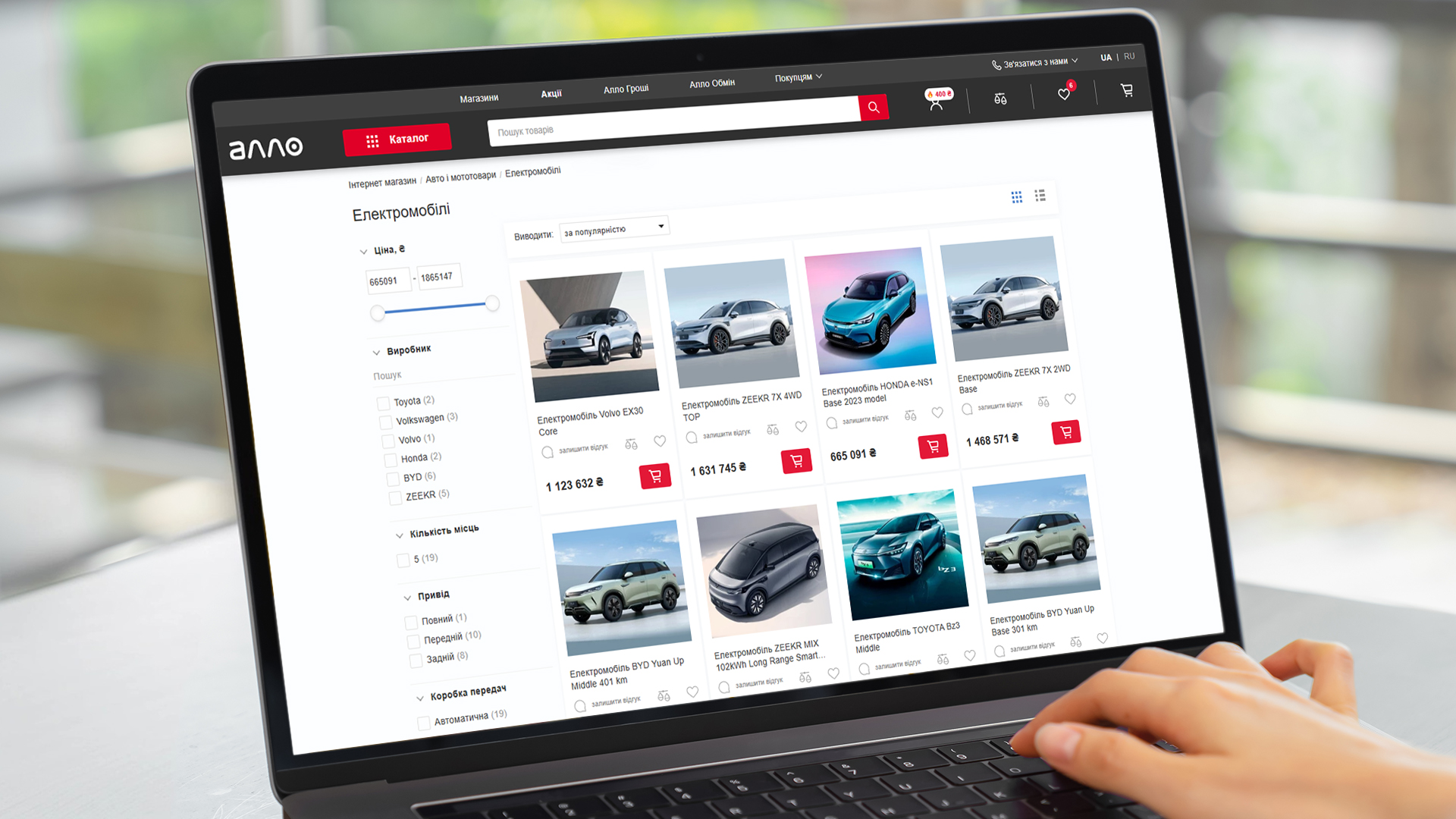 «На маркетплейсе представлено немало моделей электротранспорта. В частности, наши клиенты покупают онлайн велосипеды, гироскутеры, гироборды, детские электрические автомобили, электросамокаты. Причем именно последние демонстрируют стабильные продажи, этот вид персонального транспорта пользуется у клиентов Алло наибольшим спросом. Украинцы уже готовы покупать онлайн абсолютно разные товары, включая и транспортные средства. В частности, в конце 2024 года на allo.ua были приобретены трактор, а также десяток мотоциклов. Так что появление электромобилей среди других товаров было лишь делом времени и является очередным шагом к расширению наших предложений и упрощению процесса онлайн-покупок для наших клиентов», – отмечает Денис Корецкий, руководитель департамента «Маркетплейс Алло».