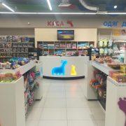 «Сложная задача заключалась в оформлении витрины. В данной локации ее практически нет, зато присутствует широкая входная группа. Этот вызов приняли специалисты компании, разработав оригинальное решение зонирования и товарных выкладок. Зонирование магазина выполнено в соответствии с 3 ключевыми категориями товаров: питание и уход за ребенком (Baby care), игрушки (Fun), и одежда и обувь (Fashion).