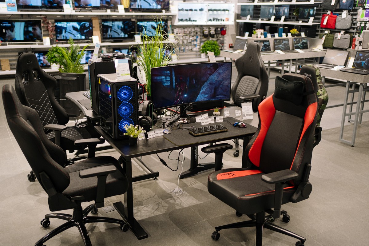 Для посетителей выделена отдельная зона тестирования геймерских товаров, где каждый желающий может не только осмотреть и приобрести необходимое, но и оценить комфорт игрового кресла, почувствовать в руке мышку, попробовать клавиатуру на ощупь, а также протестировать несколько самых популярных игр прямо в магазине. Попробовать здесь можно и VR-очки, позволяющие проникнуть в особый мир и почувствовать каждое явление, происходящее по ту сторону экрана.