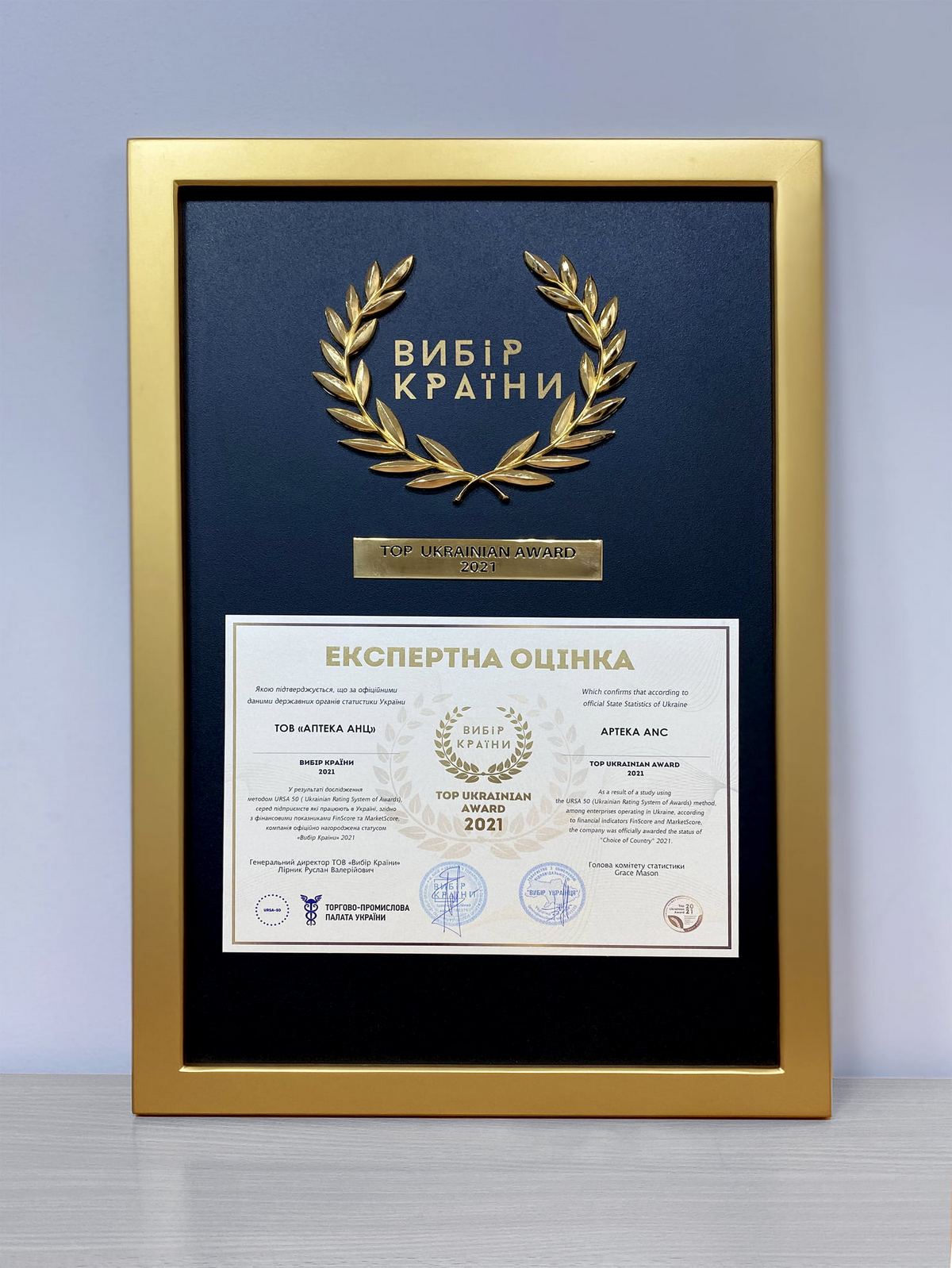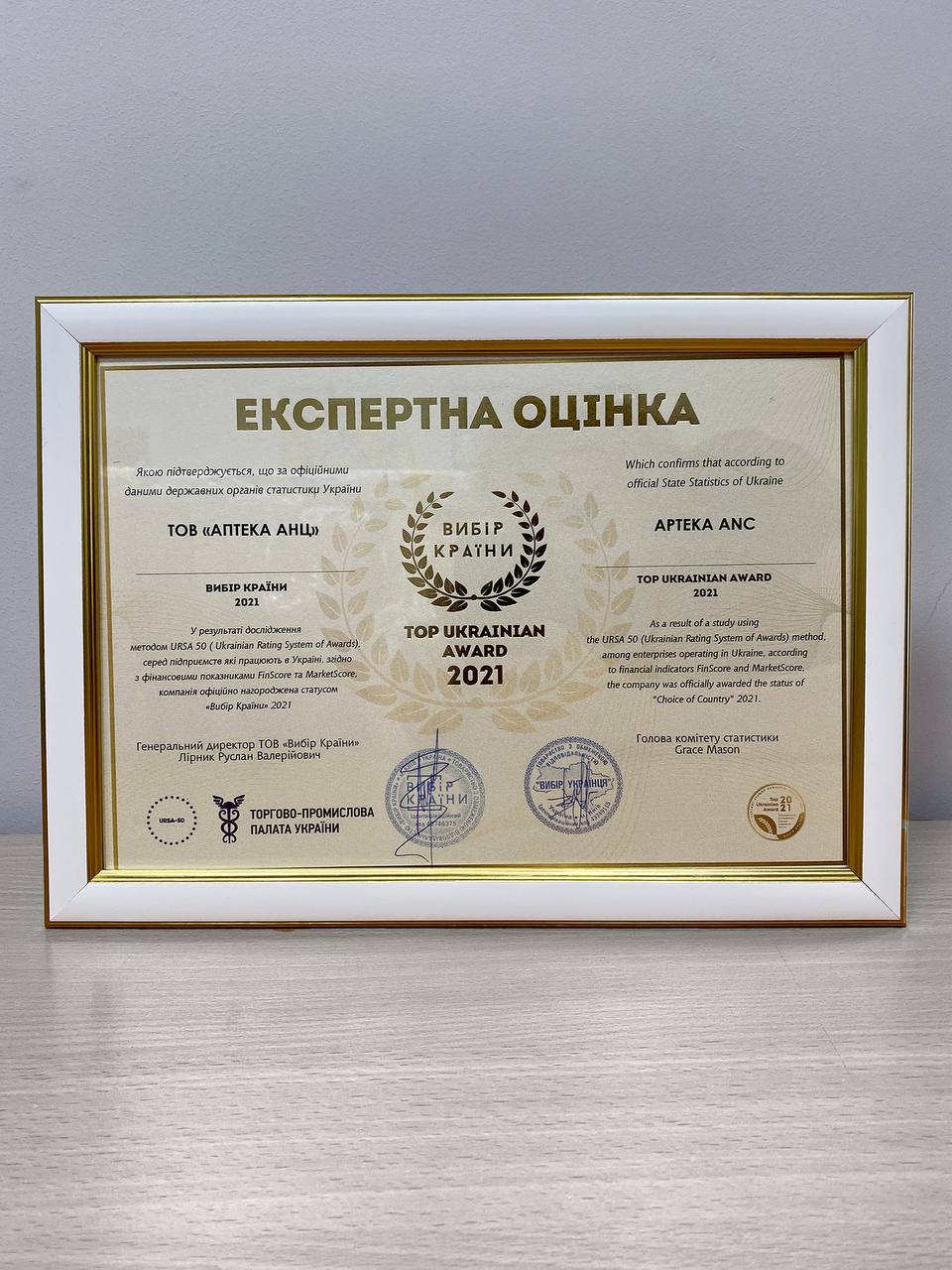 Аптека АНЦ стала победителем премии «Вибір країни 2021».