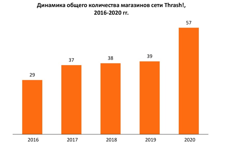 Наша аудитория – это молодежь. Не столько по возрасту, сколько по мировоззрению. Это прогрессивные люди, с динамическими преимуществами, активные и открытые новому. Этот дух считывается и в визуальной эстетике «Thrash! Траш! ». Дизайн наших магазинов – так же как и ассортимент – достаточно авангардные для ритейла.