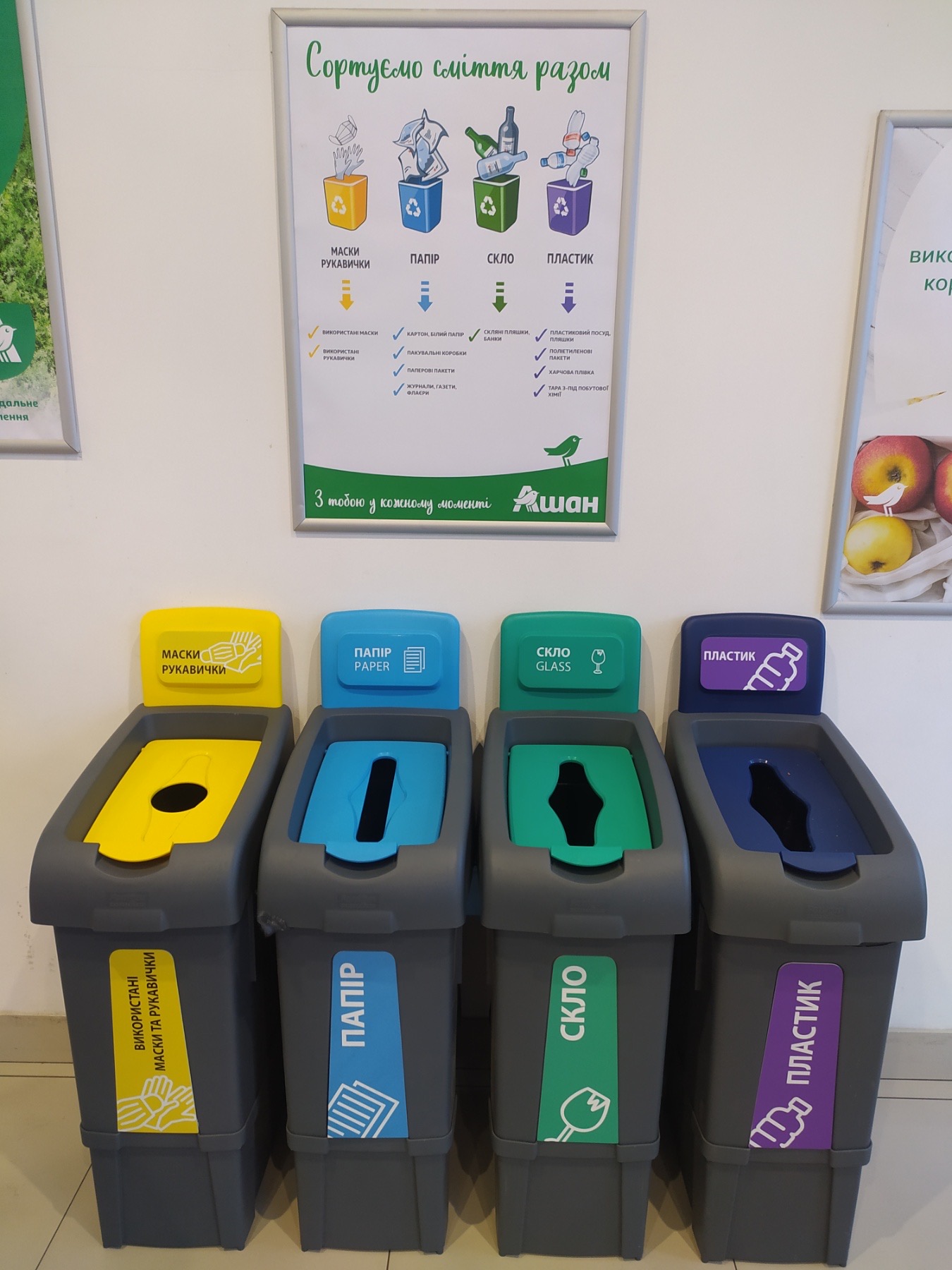 Сортировочные баки – один из этапов стратегии Ашан в этой сфере. В апреле 2021 года компания полностью отказалась от первичного пластика на кассах. Ашан Ритейл Украина запустила пакеты, которые на 100% изготовлены из переработанного пластика. Еще раньше компания начала поощрять своих клиентов отказаться от пластика в торговых залах. Там стали продавать шоперы, сумки многоразового использования.