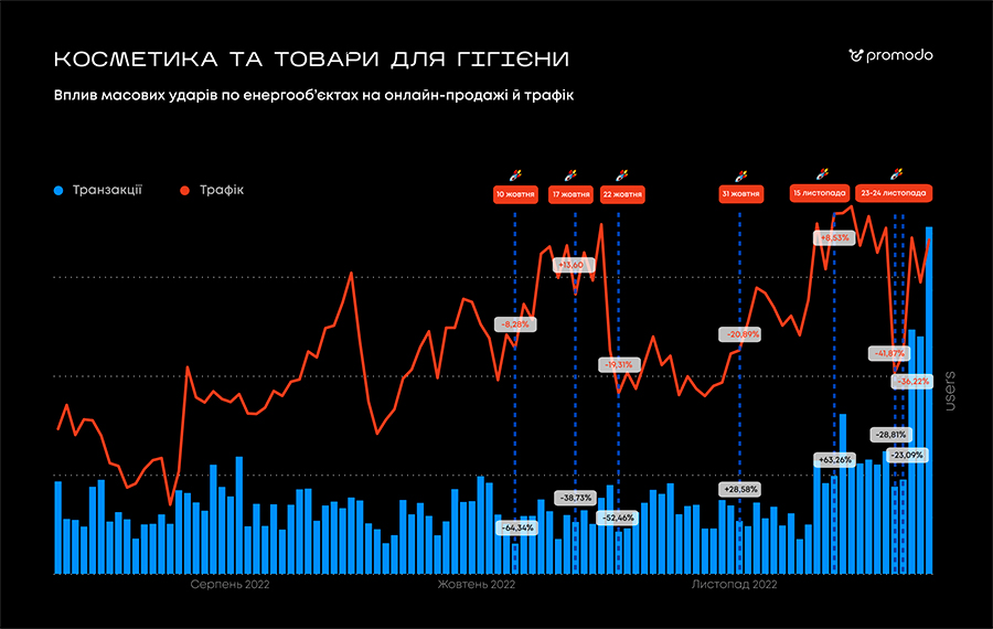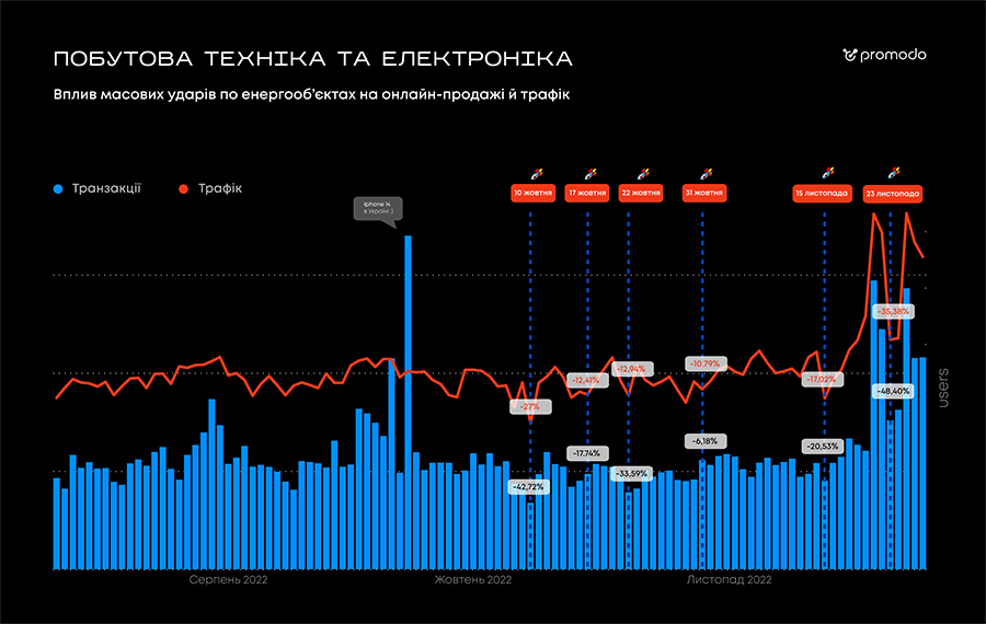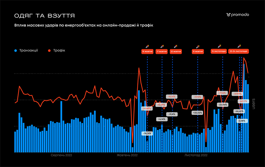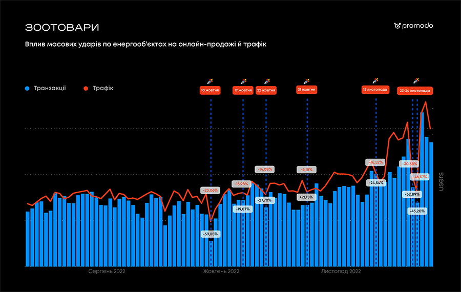10 октября Украина столкнулась с новым этапом российской агрессии – ударами по объектам энергетической инфраструктуры. Команда Promodo проанализировала, как массовые аварийные отключения света по Украине оказывают влияние на продажи и трафик онлайн-магазинов.