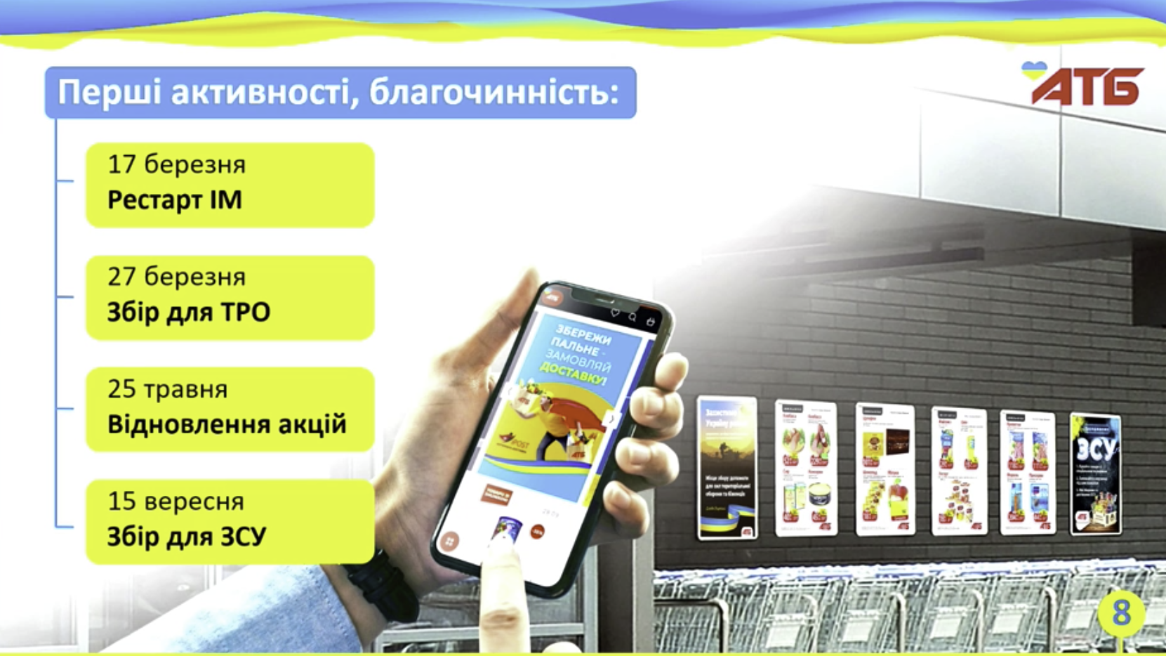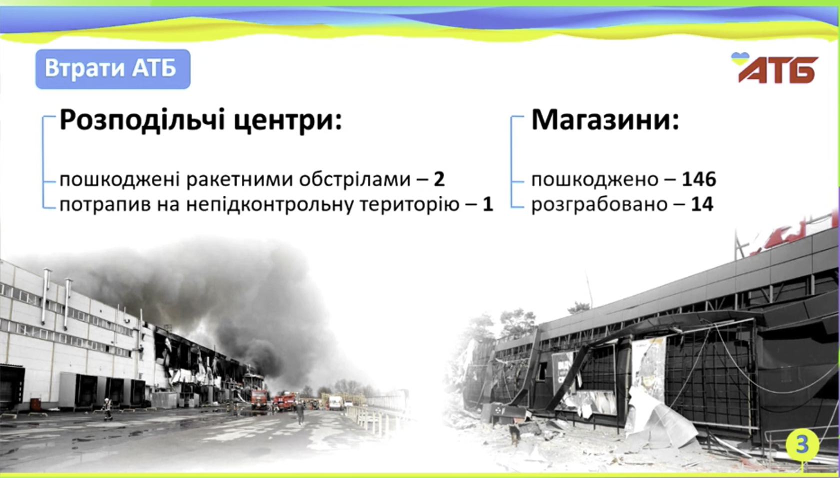 Магазины АТБ находятся во всех крупных, средних и почти во всех маленьких городах Украины. Из-за большого размера сети после начала войны мы пострадали очень сильно. В частности, мы потеряли два распределительных центра и один наш РЦ сейчас находится на неподконтрольной территории.
