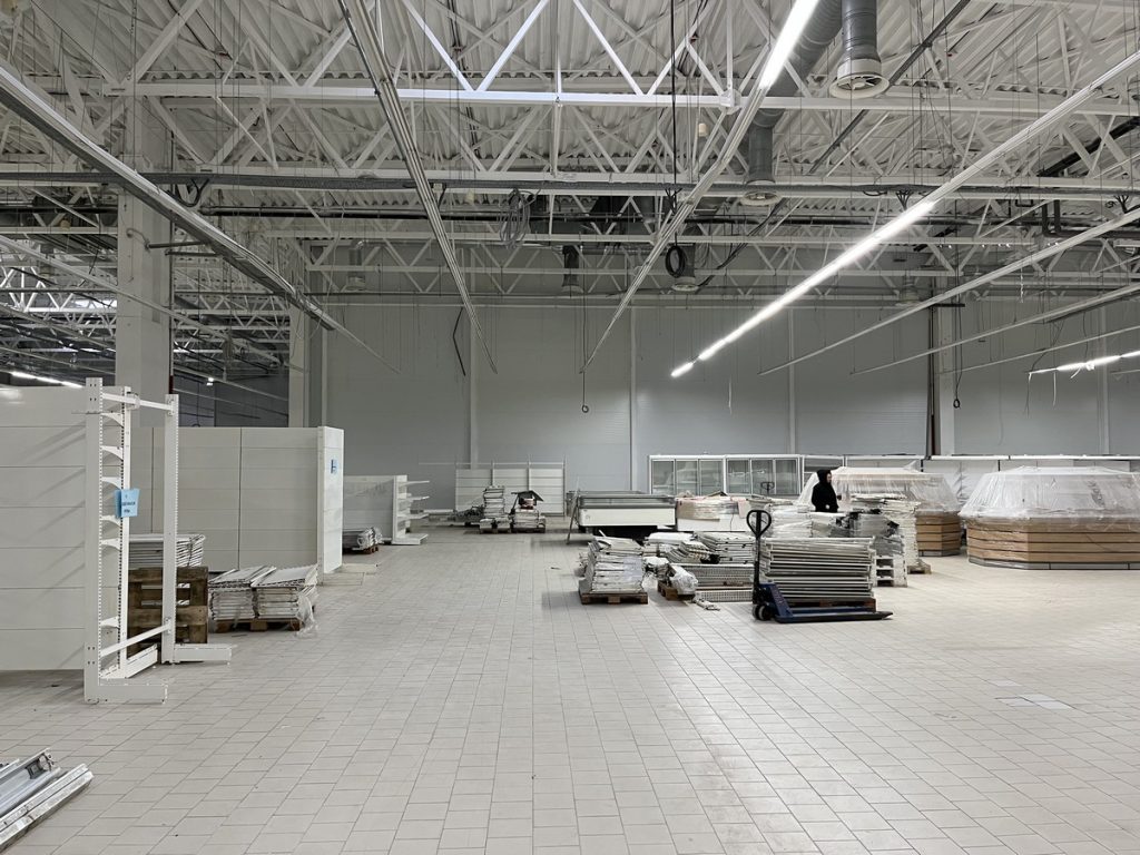 Работы по восстановлению всего гипермаркета активно продолжаются.
