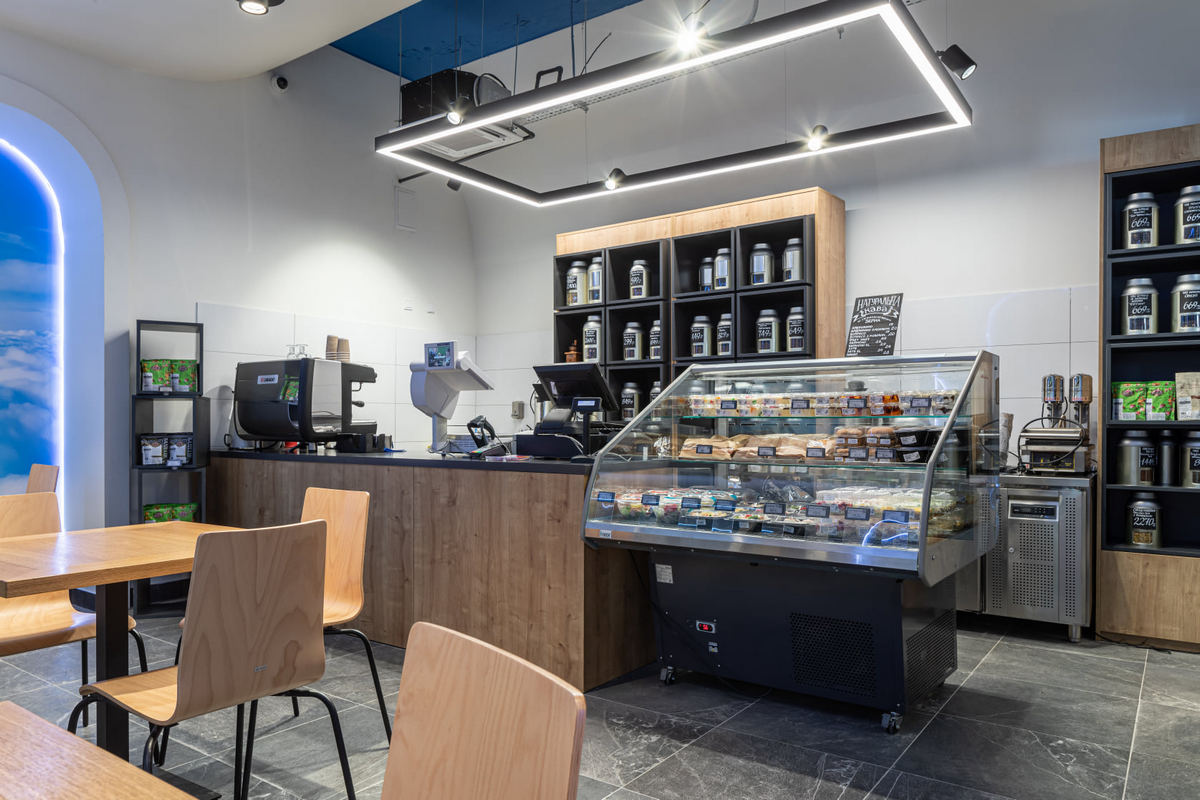 Площадь нового магазина – 780 кв. м, супермаркет оборудован восемью кассами, из которых три – обычные и пять экспресс-касс.