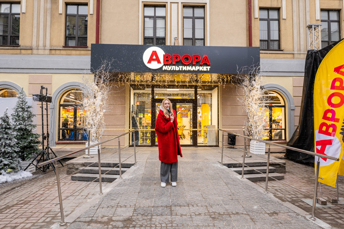 Площадь торгового зала магазина – 400 кв. м, а ассортимент товаров больше 6 500 SKU. В магазине работают обычные кассы и для самообслуживания. Для удобства клиентов в зале есть прайсчекеры «Аврорчик» собственного производства, с помощью которых можно узнать стоимость товара и дополнительную интересную информацию.