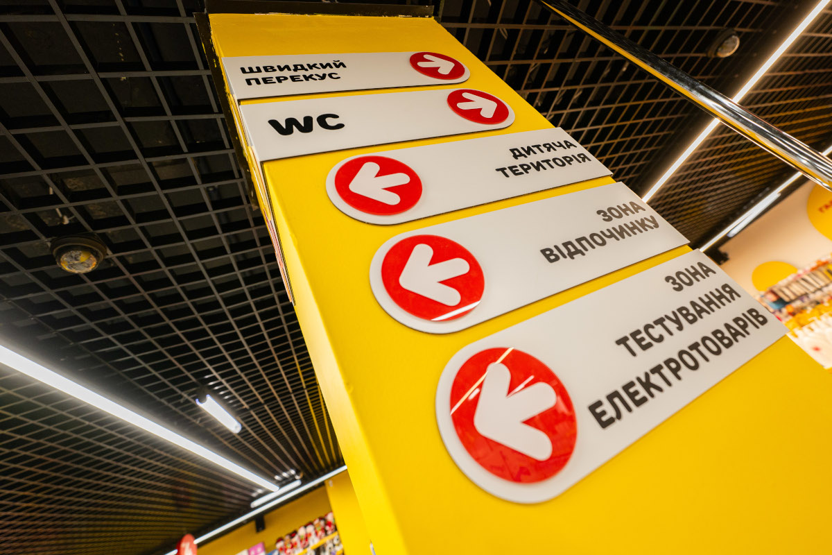 “В этом магазине мы используем новые подходы к оформлению внутренней и наружной рекламы – объемная вывеска со световыми эффектами на входе, объемные буквы внутри торгового зала, основной элемент бабл, который становится объемным, навигация и коммуникация на стенах”, – комментирует Яна Дворникова, руководитель отдела архитектурного маркетинга сети Аврора.