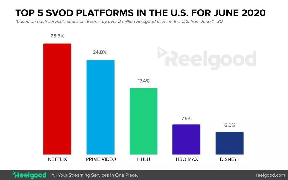 Доля рынка стриминговых компаний в США на июнь 2020 года