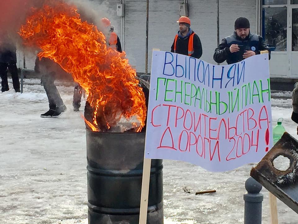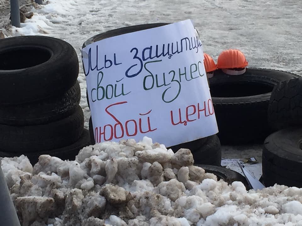 Сергей Зайцев заявил, что в связи со всеми этими событиями у предпринимателей «лопнуло терпение». «Где-то они нашли или сделали из швеллера подобие противотанковых ежей. Они полутораметровые. Вчера их поставили и связали между собой цепями. Сейчас укрепляют и сваривают между собой блоки при помощи труб. Жгут костры, разложили резиновые шины и развернули плакаты. Одна грузовая машина перегородила проход. Люди в строительных касках и жилетах», – подчеркнул Сергей Зайцев.