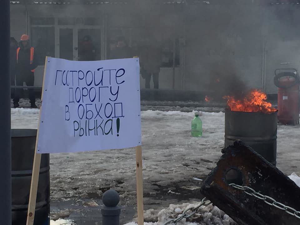 Костры и противотанковые ежи: предприниматели ТЦ Барабашово построили баррикады (+фото)