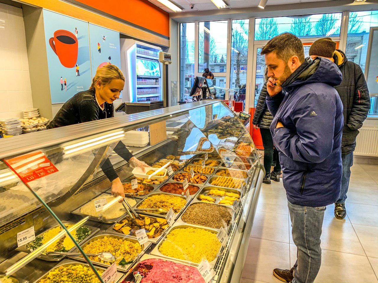 «В магазинах формата city, которые мы открываем в центре города на пересечении оживленных улиц, наблюдается высокий спрос на готовую еду, поэтому решили разместить эту группу товаров прямо на входе в магазин. Здесь можно приобрести кулинарию собственного производства, хот-доги, пирожки. Также оборудовали в торговой точке кофе-станцию и небольшую зону фуд-корта, где каждый желающий может перекусить или выпить приобретенный напиток», – говорит Вадим Кубица.