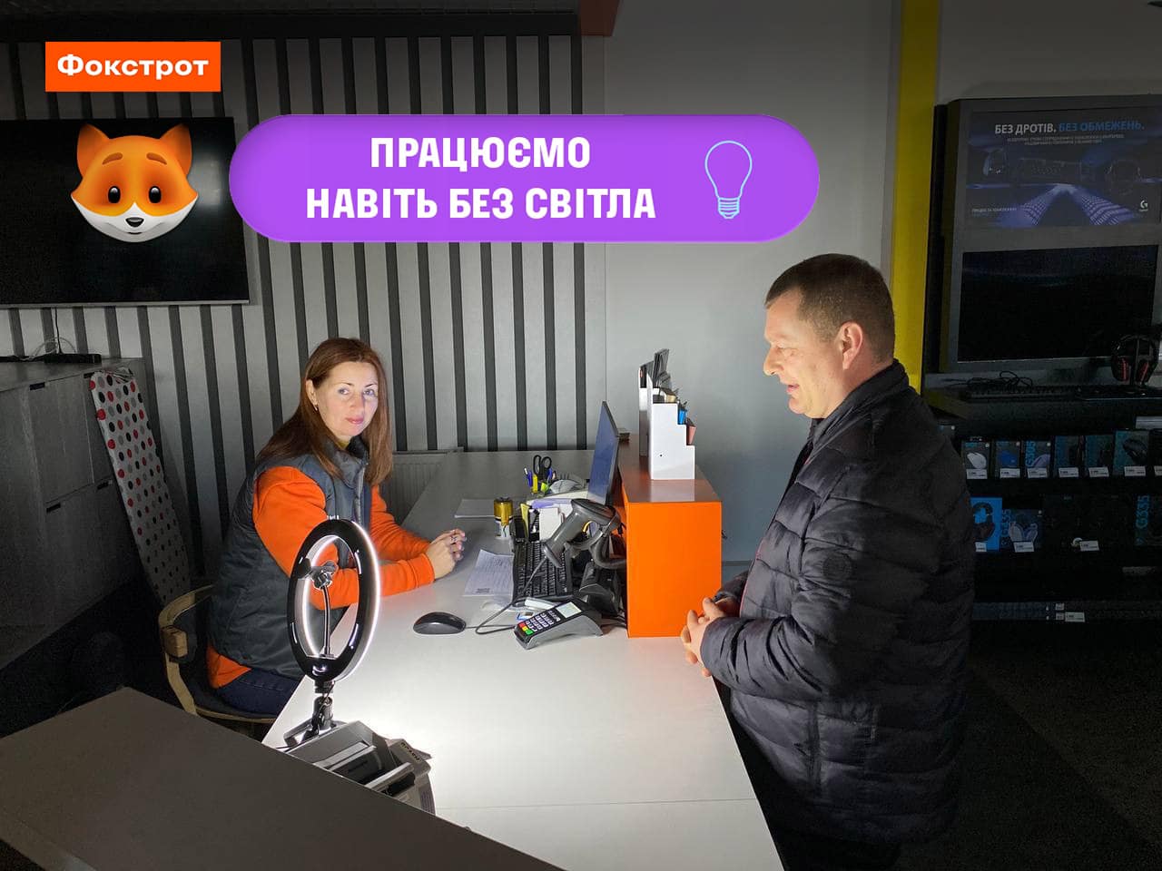В Фокстрот, если магазин все же вынужден закрыться из-за отключения света, сотрудники завершают оформление покупок клиентов, которые уже выбрали товар и заканчивают консультацию с посетителями и только после этого магазин закрывается. В частности, это больше касается ряда закрывающихся ТРЦ (это 33 торговые точки). Но даже в таком случае по возможности выдают или оформляют заказы, предоставляют консультации по телефону.