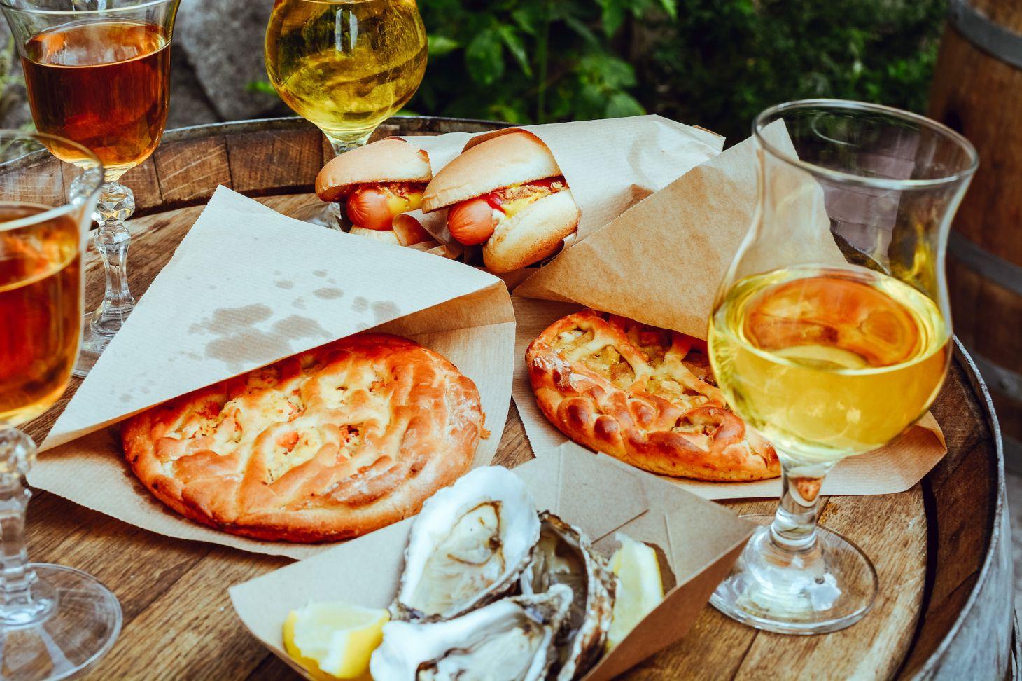 Что в меню? Сидр, яблочная настойка, лимонад, пунш, устрицы, яблочный и куриный пирог, хот-доги – классический и веганский. Все очень просто — и в этом смысл. Выбор сделать очень просто. В то же время различные комбинации различных напитков и блюд – это различные мотивы прийти, которые срабатывают для разных категорий гостей. Хочется праздничного настроения? Берешь сидр (с пузырьками, фактически игристое яблочное вино) и несколько устриц. Обеденный перерыв? Можно заскочить за хот-догом или пирогом. И так далее.