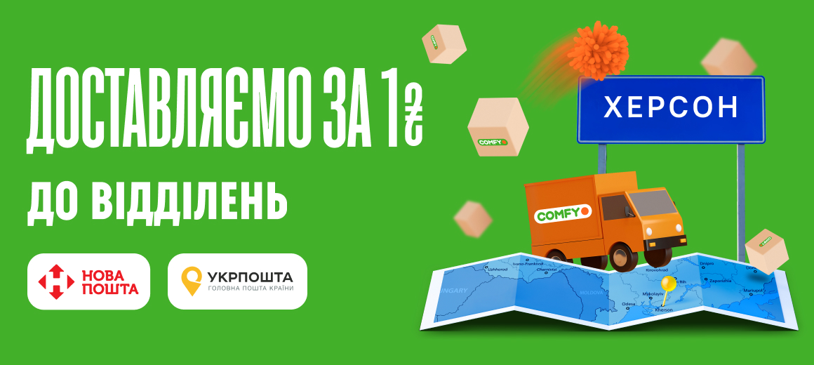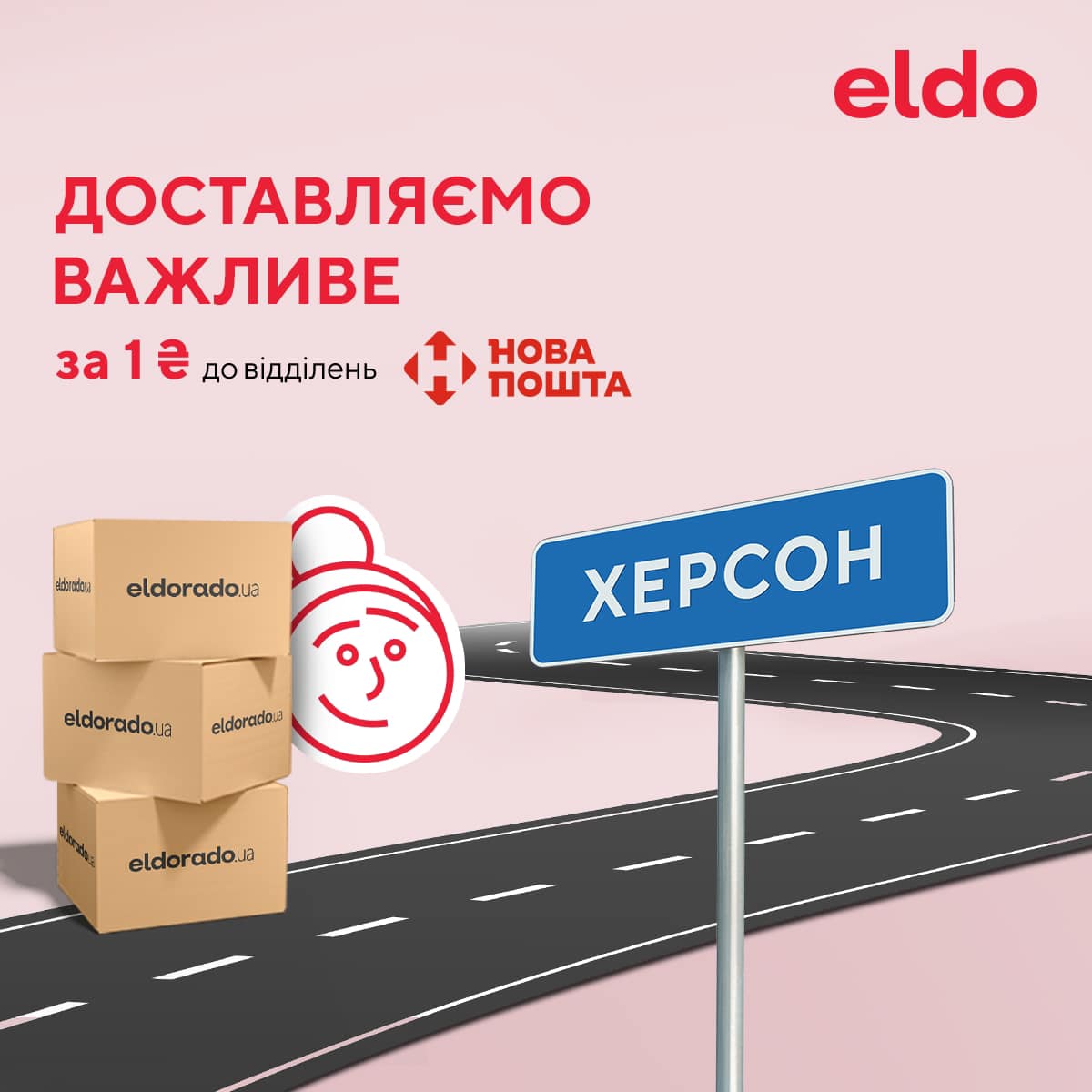 Точно так же Eldorado уже доставляет все важное в Херсон для работающих отделений Нова пошта. Стоимость доставки тоже составляет 1 грн при заказе от 250 грн.