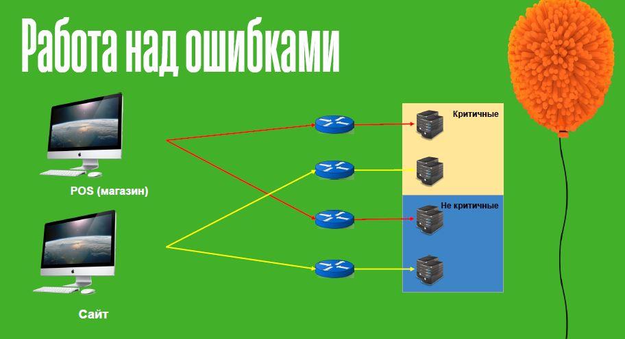 По результатам этого сбоя мы проработали планы Б: в основном они сводятся к отключению не очень критичных блоков, снижению нагрузки, к тому, чтобы процесс продаж в случае критической ситуации был не таким комфортным для продавца, но чтобы это хотя бы работало и можно было обслуживать клиентов.