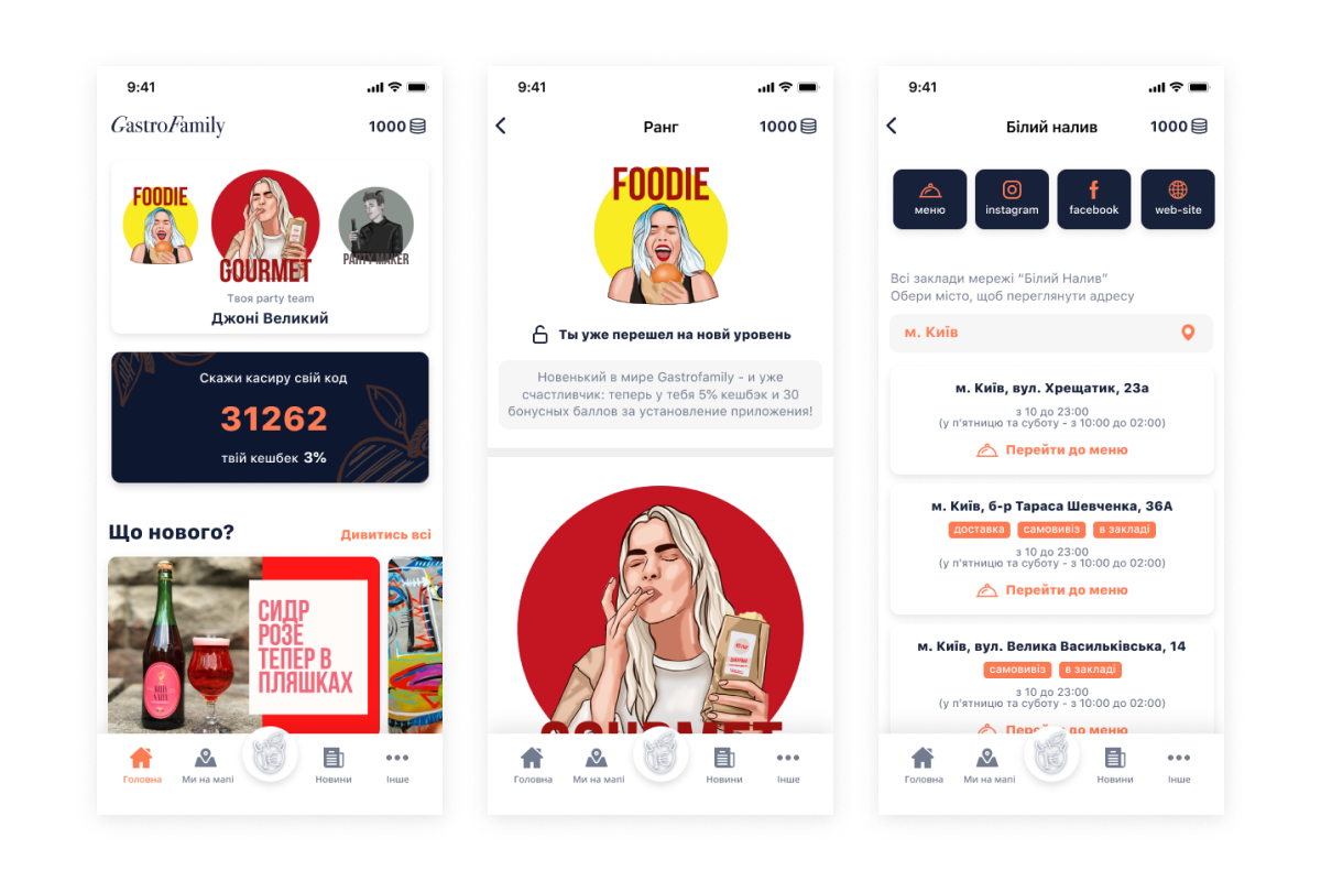 Мобильное приложение создано с целью максимально “привязать” потребителя к бизнесу. А система геймефикации мотивирует покупателя выполнять различные задачи: приглашать друзей, совершать повторные покупки и увеличивать средний чек, взамен получая за это вознаграждение в виде повышенного кэшбэка, персонализированных акций и ранее недоступного функционала.
