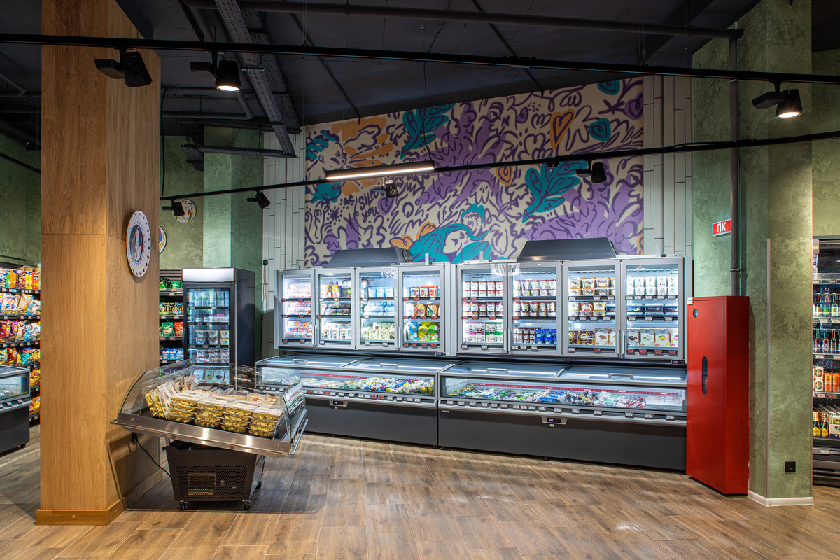 Площадь гостеприимного и уютного супермаркета составляет 957 кв. м. Здесь работают три обычных кассы, три экспресс- и шесть самокасс, для выдачи интернет-заказов доступна отдельная касса, еще на одной – можно приобрести кофе и чай.