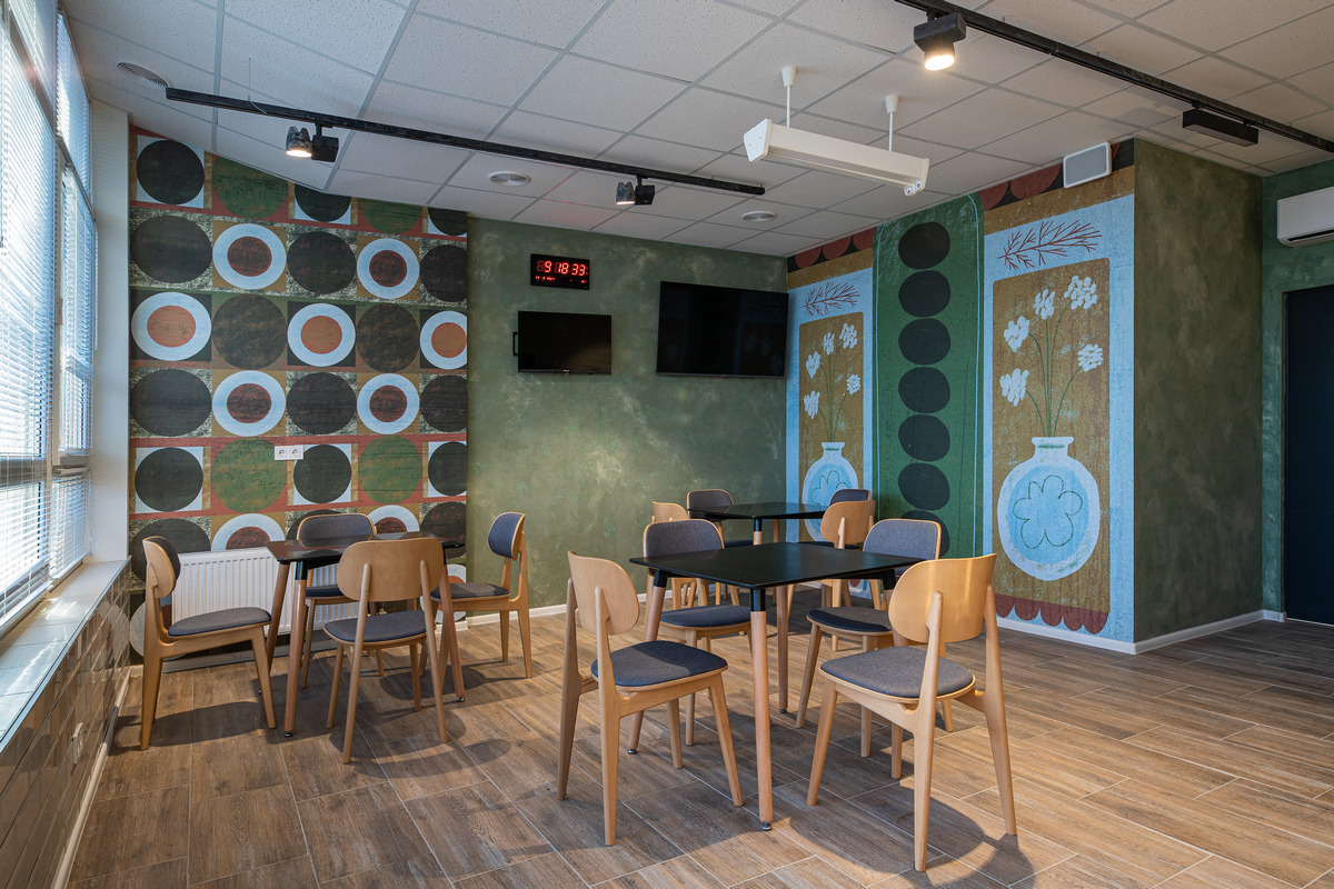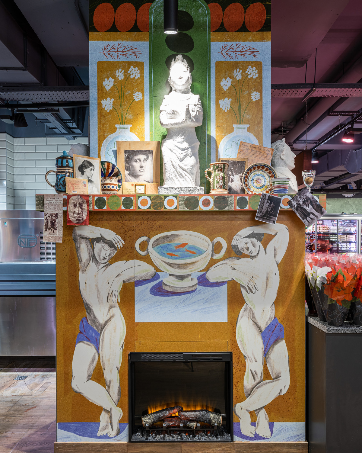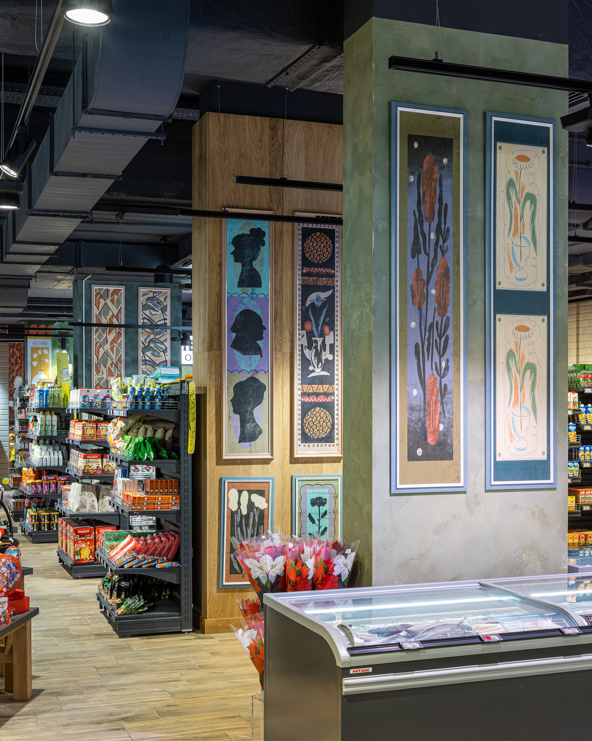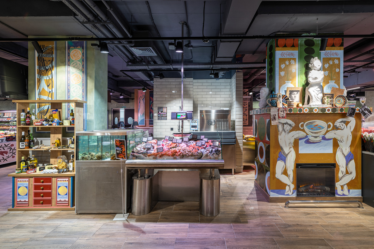 Каждый здесь почувствует уют английского дома, где проводили время и творили молодые интеллектуалы, писатели и художники начала XX века. Интерьер супермаркета наполнен разнообразными картинами, акварельными иллюстрациями и расписанными тарелками, которые придают интерьеру бохо-шика.