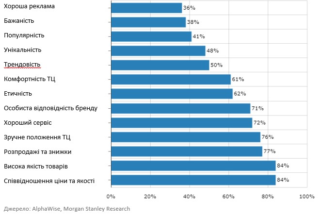 Где именно место “этичности” между другими ключевыми критериями, которые могут повлиять на расходы потребителей? На сегодня оно все еще находится посередине: 62% считают, что этика важна, почти в равной степени как комфортность и удобство торгового отделения (61%).