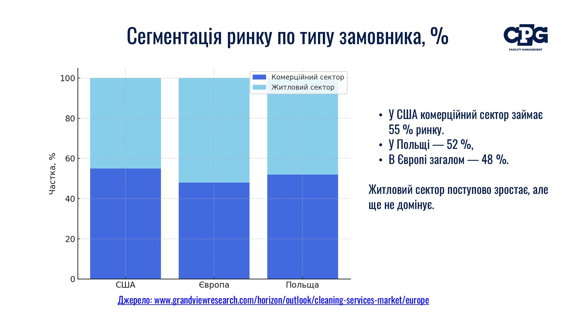 Сравнение рынков клининговых услуг в Украине, Польше и США