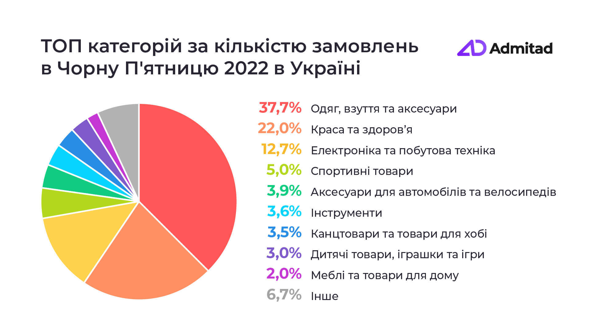 Следует также отметить, что сектор онлайн-сервисов в последнее время играет более активную роль в распродажах. Admitad исследовал общий объем продаж и выделил тройку лидеров в сегменте сервисов в Украине: Билеты на мероприятия (35,1%), Онлайн-образование (5,9%), Музыка и фильмы (5,6%)