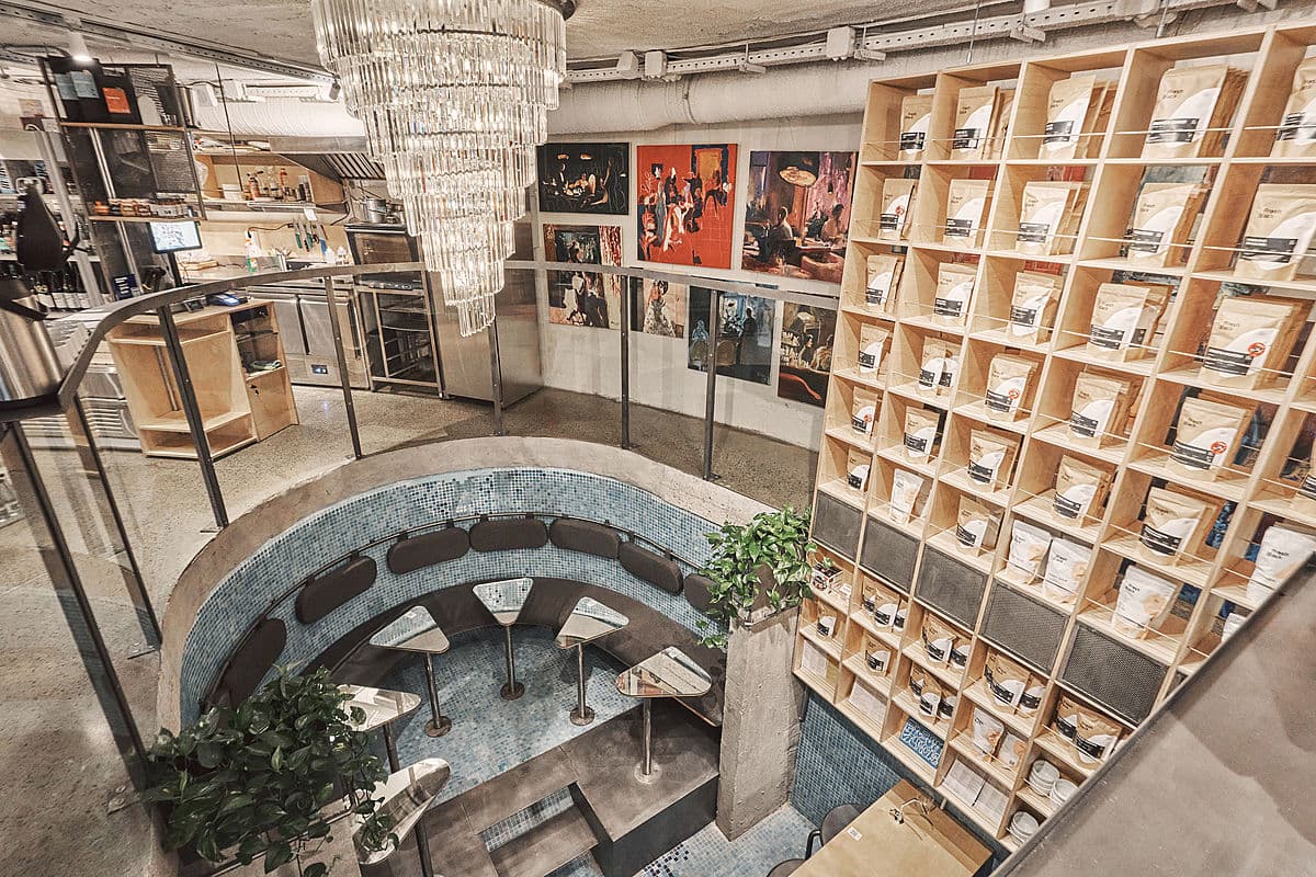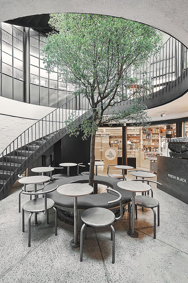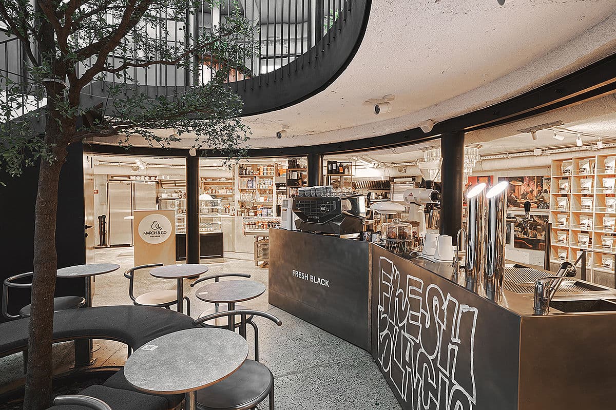 Fresh Black – это кофейня в гастропространстве “Рейтарская Circle”, дизайн которой разрабатывало Loft Buro. По словам архитектора Олега Волосовского, «основной и самой неожиданной доминантой пространства стал бассейн». Его «вернули к жизни», превратив в «театр обжарки кофе». Для этого плиту над бассейном раскрыли: получилось пространство с двумя видами посадки, составом готовой продукции и двухуровневой стойкой для ростера, обжаривающего кофейные зерна. Основатели заведения – Виктор Шраменко и Ксения Полтавец.