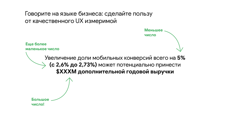 Используйте количественные данные, чтобы продвигать идеи более аргументированно, обосновать важность развития мобильных решений и заручиться поддержкой руководства.